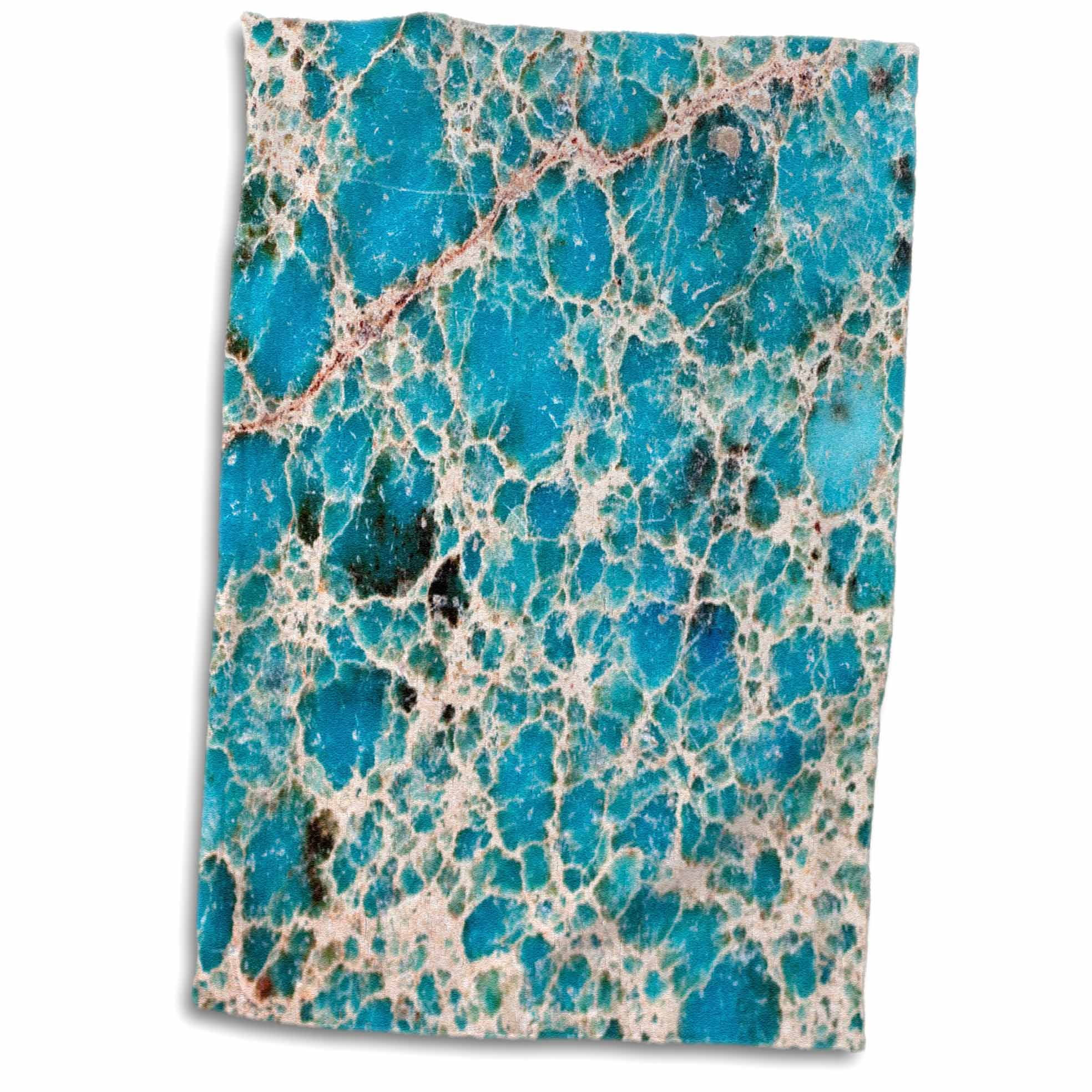 Turquoise Gemstone Towel is great to use in the kitchen, bathroom or gym. This 15 by 22 inch, hand/sports towel allows you to customize your room with a special design or color. Great for drying dishes, hands and faces. Suitable to put in any sports bag. Image will not fade after washing. Machine wash, tumble dry low, do not bleach. Towel will regain its fullness after the first washing. Made of 63% polyester (microfiber) /37% cotton (velour terry cloth). Image printed on microfiber side/ terry cloth side blank.
