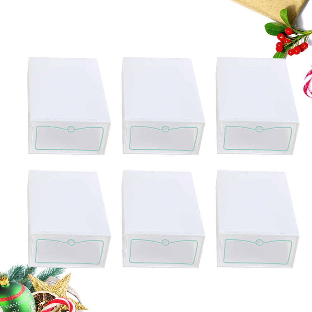 6PCS Thicken Shoes Box Transparent Stackable Shoes Storage Box Plastic Shoe Container – Size S (White)