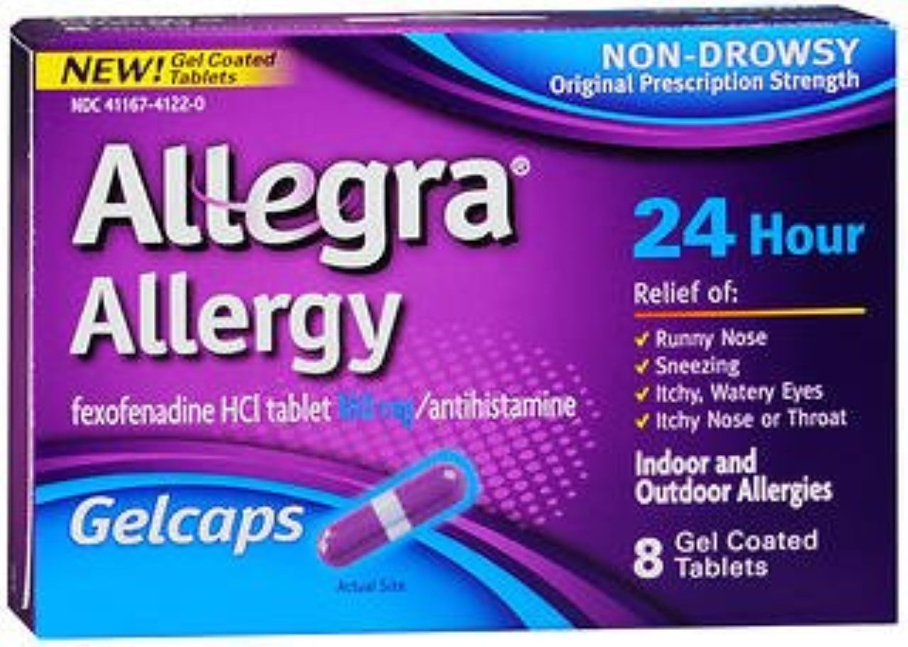 For indoor and outdoor allergies. Ingredients: Fexofenadine HCl 180 mgAntihistamine