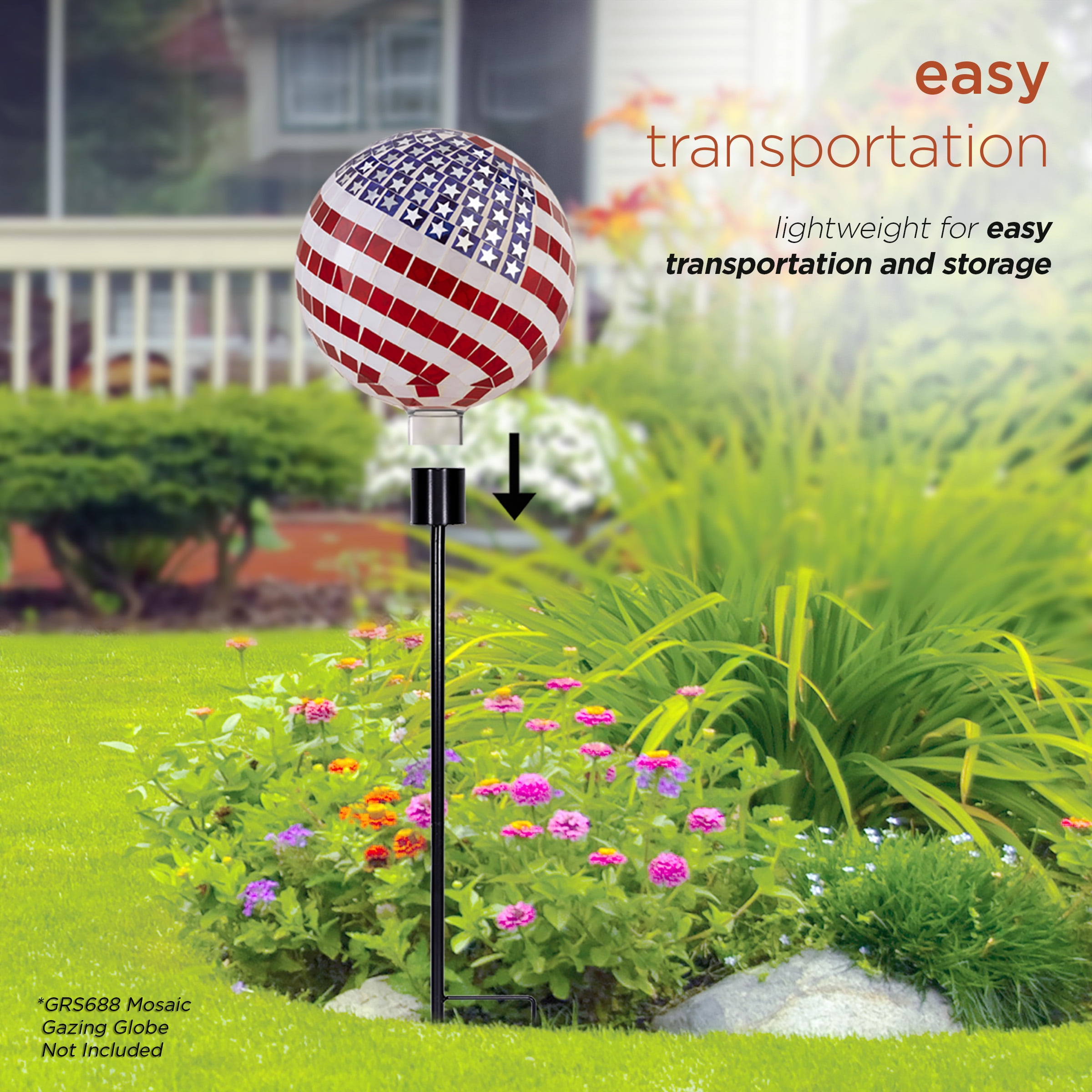 Display your artful Gazing Globe with the Alpine Corporation Gazing Globe Stand. Place your favorite globe on the stand to immediately add artful styling to your space. This stand is made of durable iron with a stylish black finish for years of quality use. Your yard will be the delight of guests, family, and friends! To use, simply stick the two stakes into the ground. With a 1-year warranty, you can be confident in the quality of your purchase. Stand measures 5"L x 2"W x 31"H for use in yards of any size.