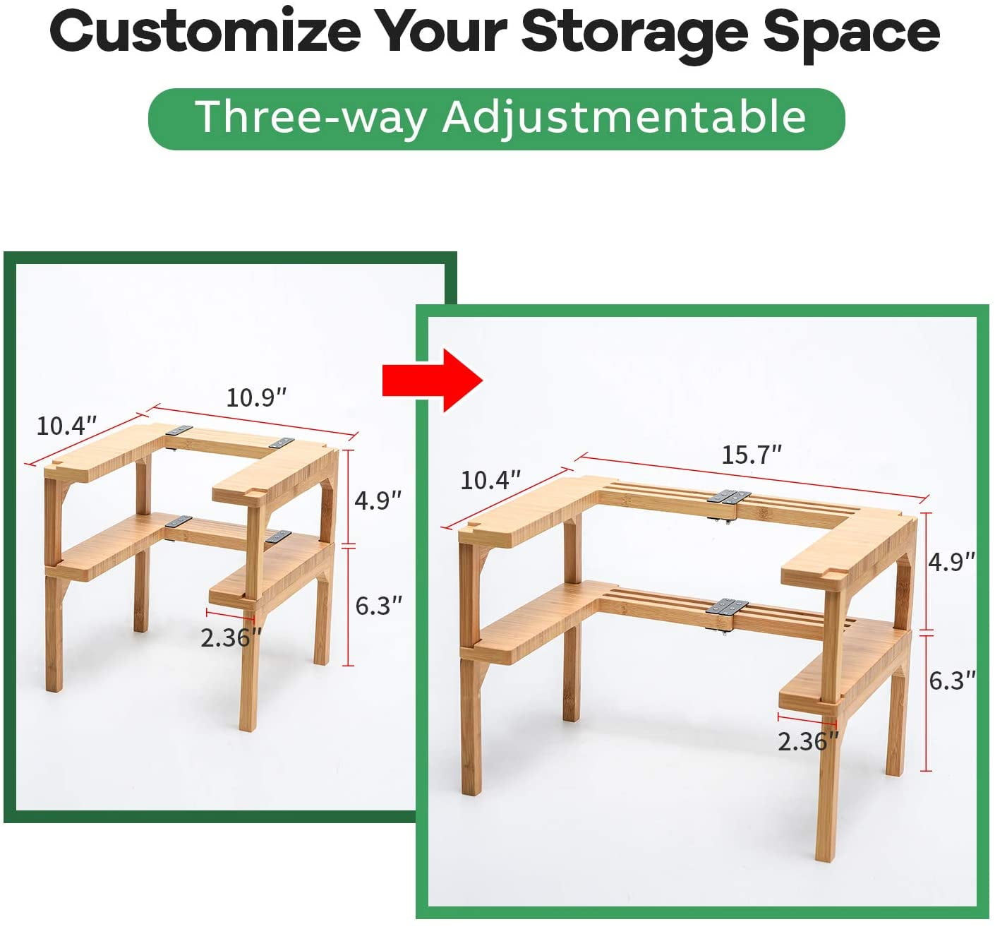 What You Get: 2 Tier High Capacity Spice Rack. 100% satisfaction guaranteed and friendly customer service.Bamboo Wood 2 Tier Expandable Spice Jar Rack Kitchen Cabinet Pantry Shelf Organizer