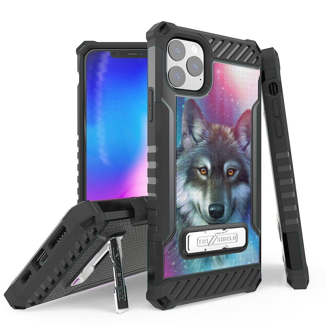 BC Tri Shield Series Military Grade (MIL-STD 810G-516.6) Impact Resistant Shockproof Case with Built-in Stand and Atom Cloth Compatible with iPhone 11 Pro Max – Wolf