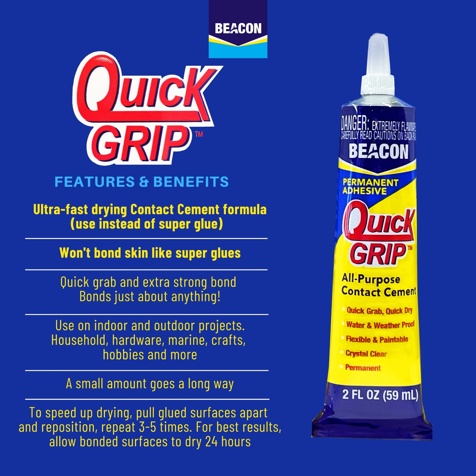 Great for home decor, hobby, craft and art projects. Beacon Adhesives’ fast-drying glue bonds fabric, canvas, leather, most plastics, wood, concrete, rubber, glass, ceramics, metal, most tiles, cork, terra-cotta, stone and more. Once it is dry, the quick-grab, quick-dry formula can be painted over.