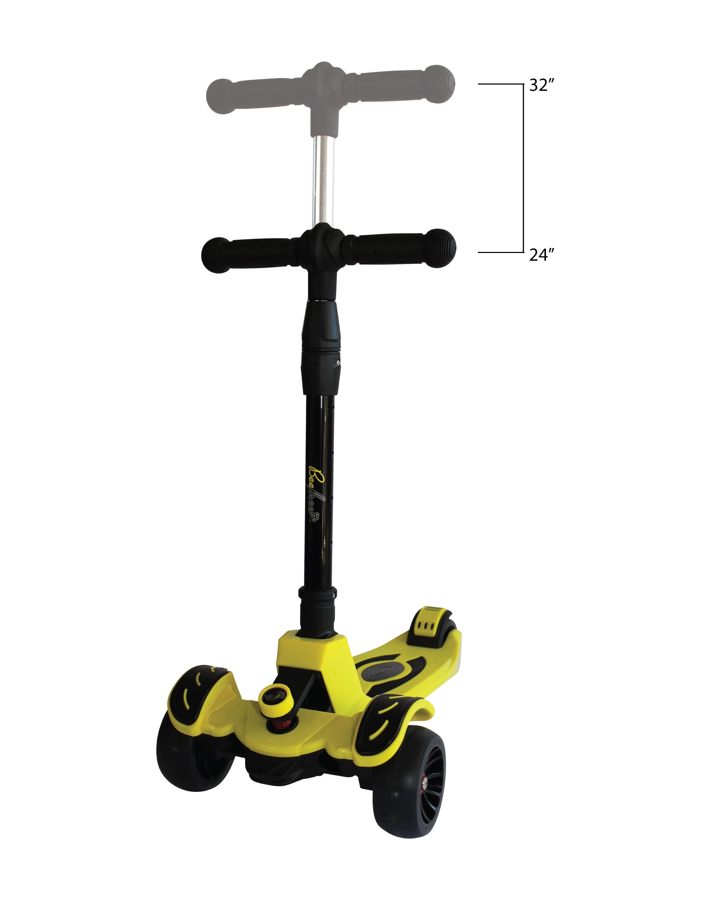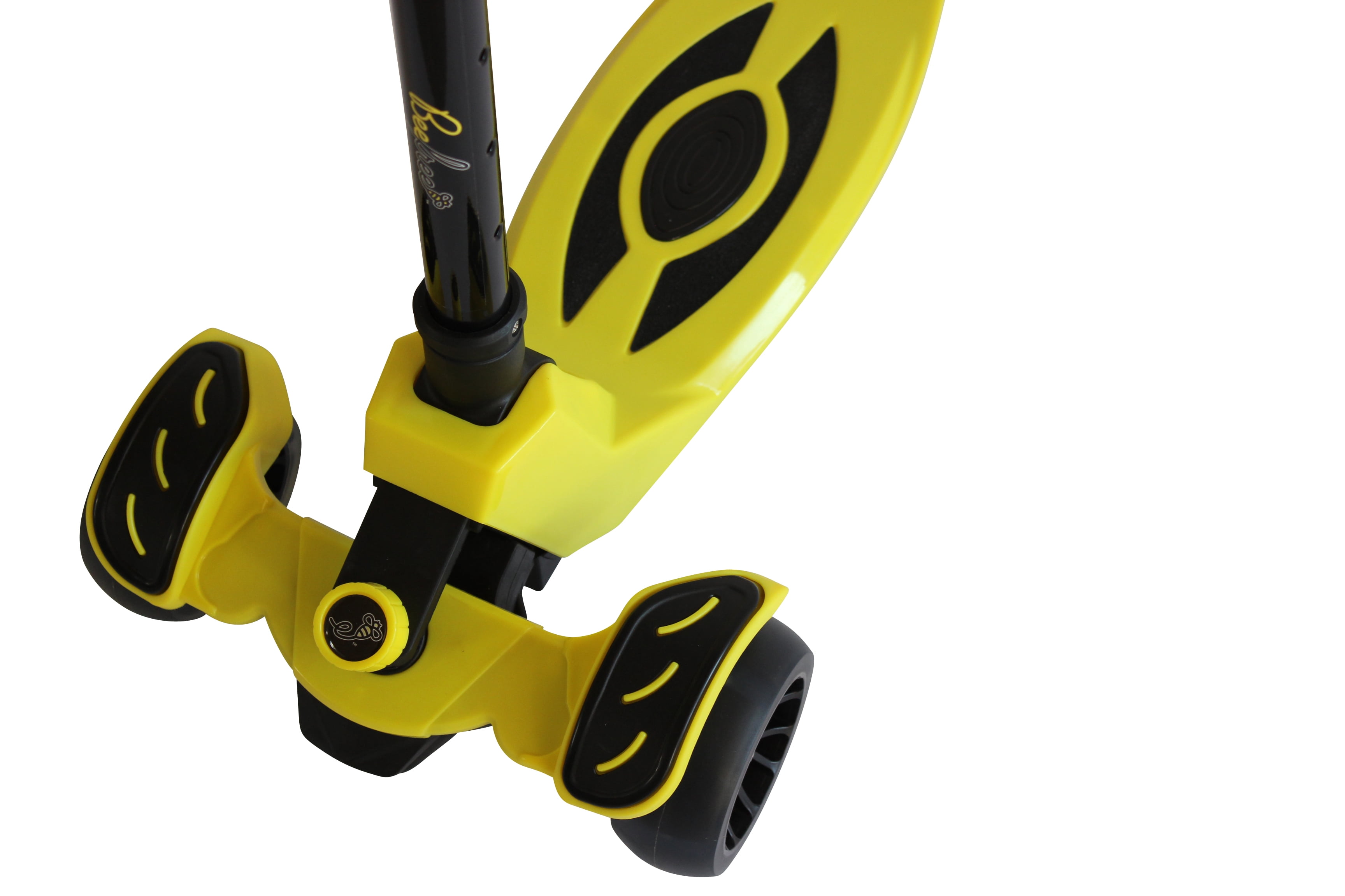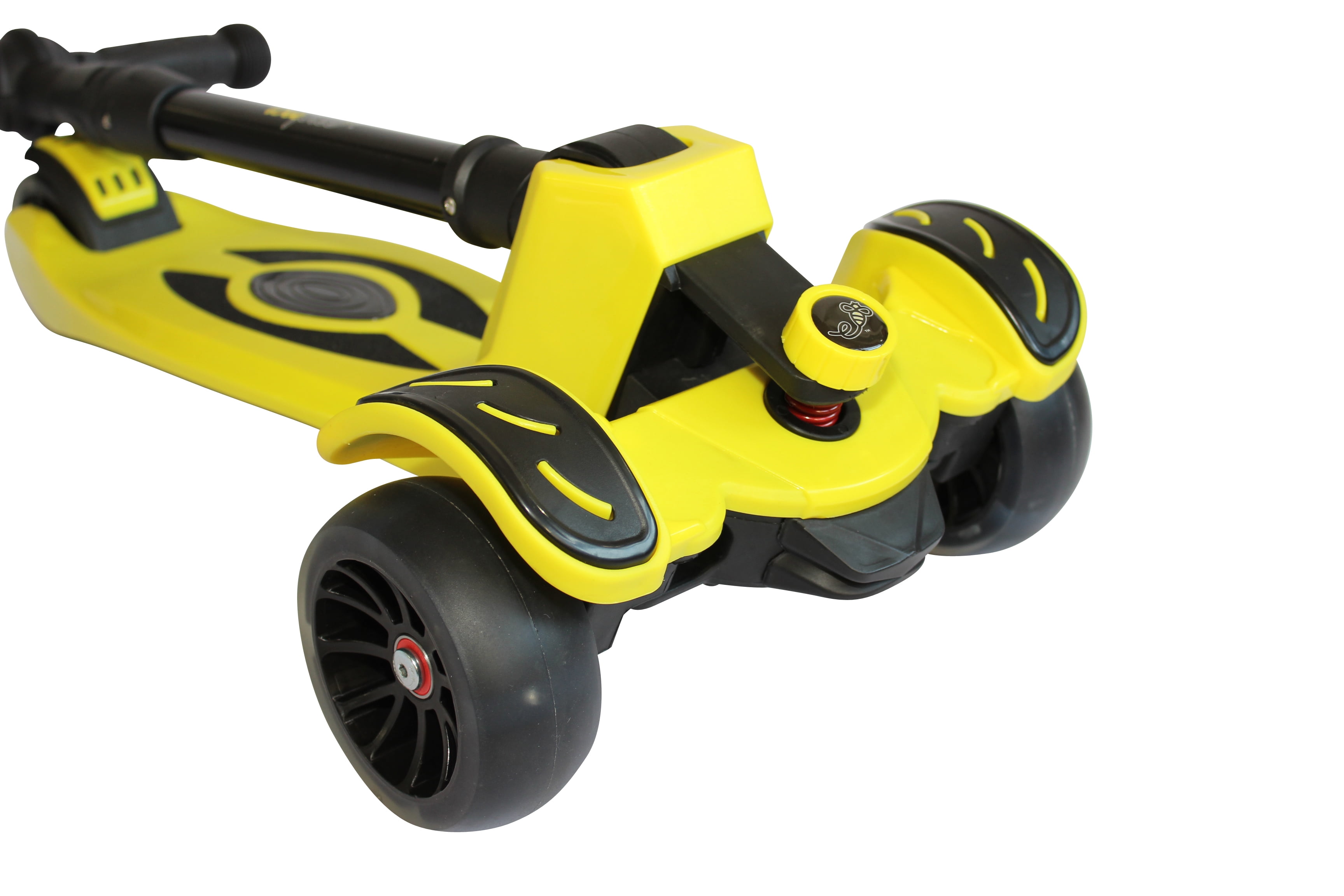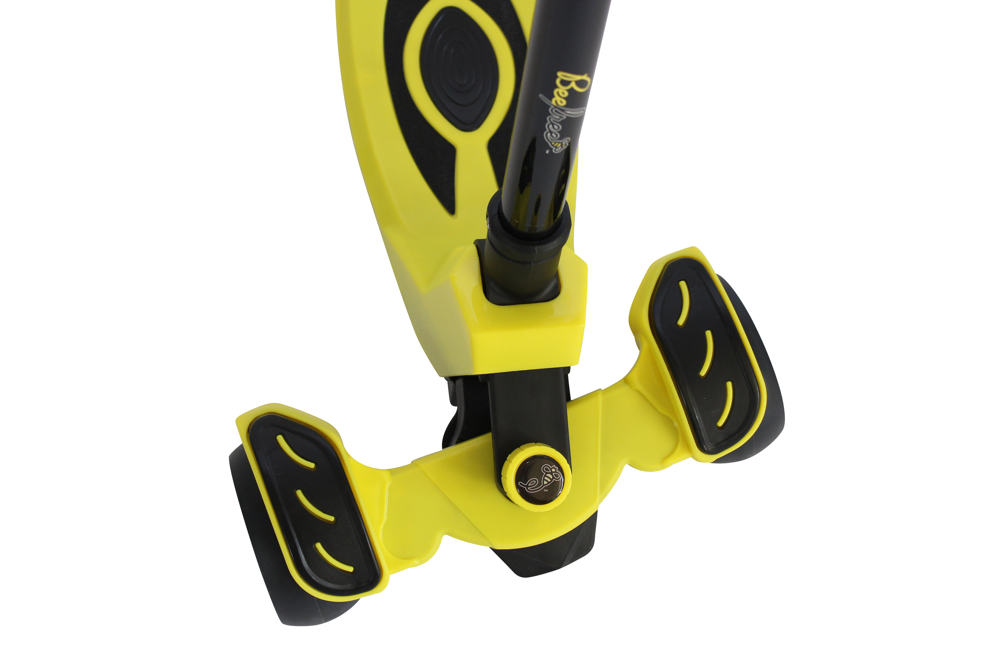 - Bright visibility: The bee-free kid scooters’ trademark yellow color, as well as the led light-up wheels, help to make young riders more visible to passing cars.