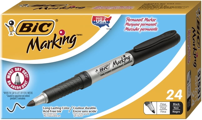BIC Marking Fine Tip Permanent Marker, Black, 24/Pack