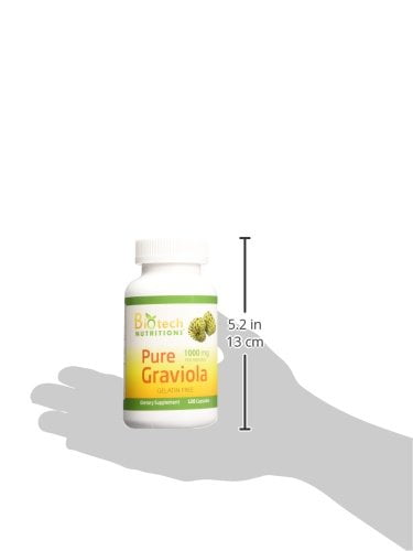 Biotech Nutritions Pure Graviola, 1000 mg, 120 CountGelatin FreeGraviola (leaf and Stem)Pure Graviola in Vegetable capsules. Serving Size 2 Capsules.