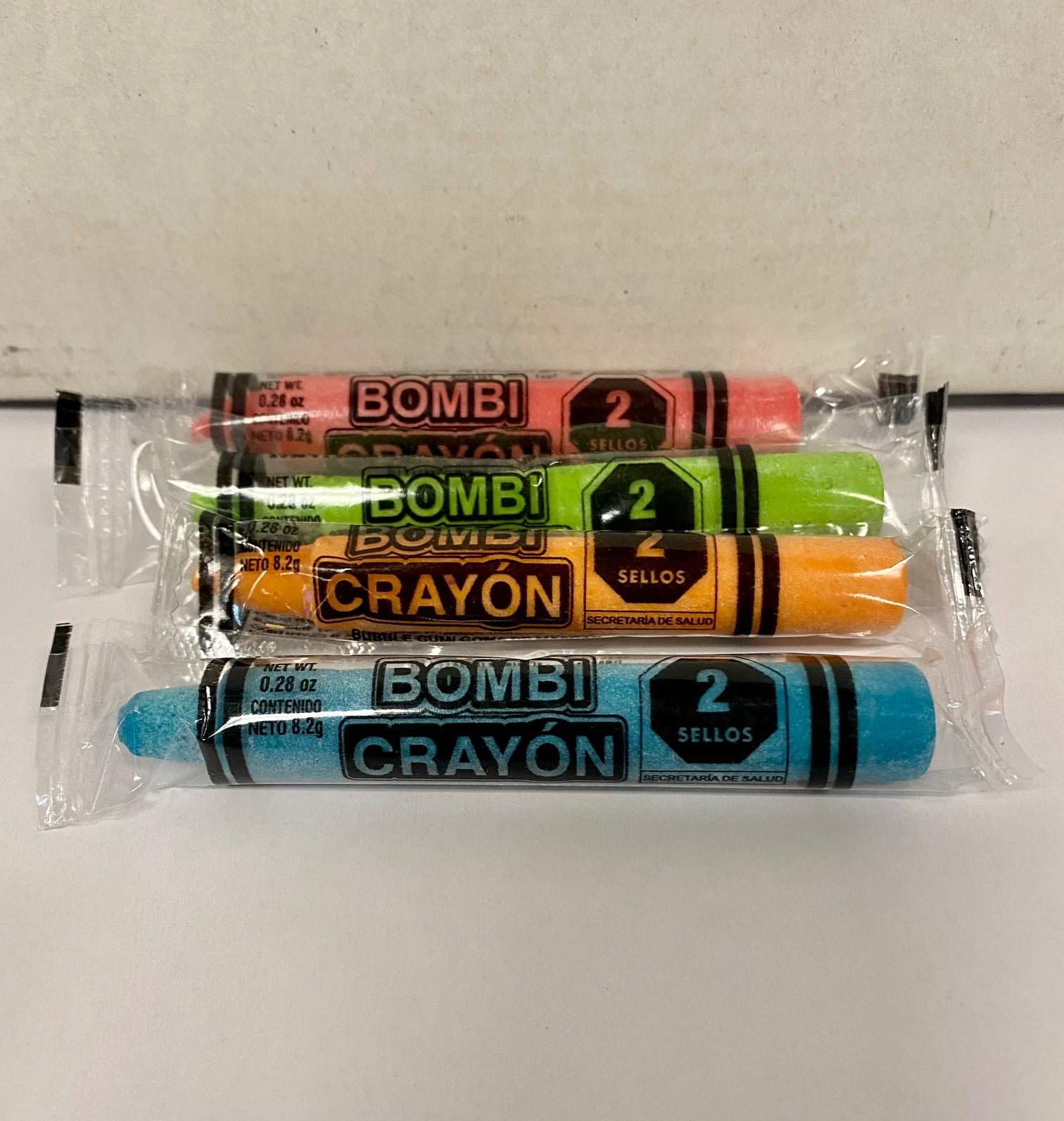 crayon shaped bubble gum in assorted fruit flavors individually wrappedcarr Bombi Crayon bubble gum 24 pieces