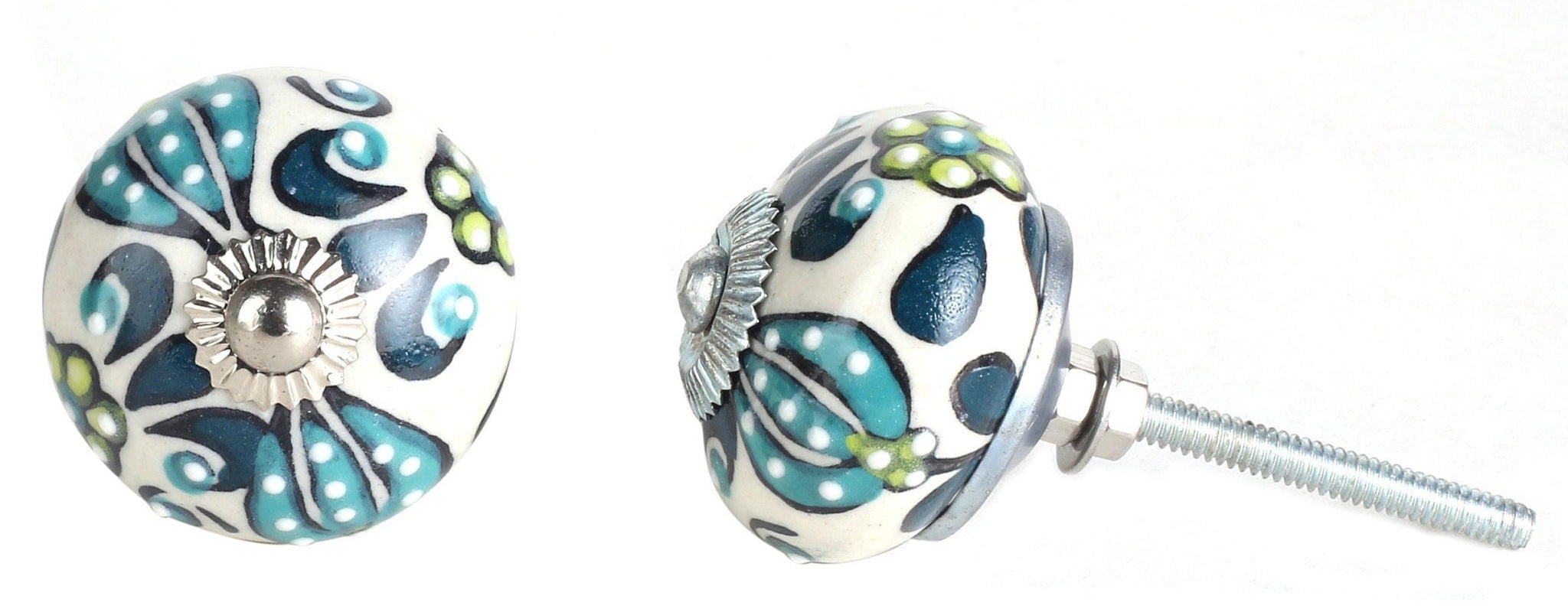 - Installation is very easy , Just drill an 1/8 " hole in the cabinet door and tighten the nut with a spanner. Recommended for use on wood interior doors & Exterior Use Total Number Of Knobs : 12 Knobs Specification – Material : Ceramic, Stainless Steel