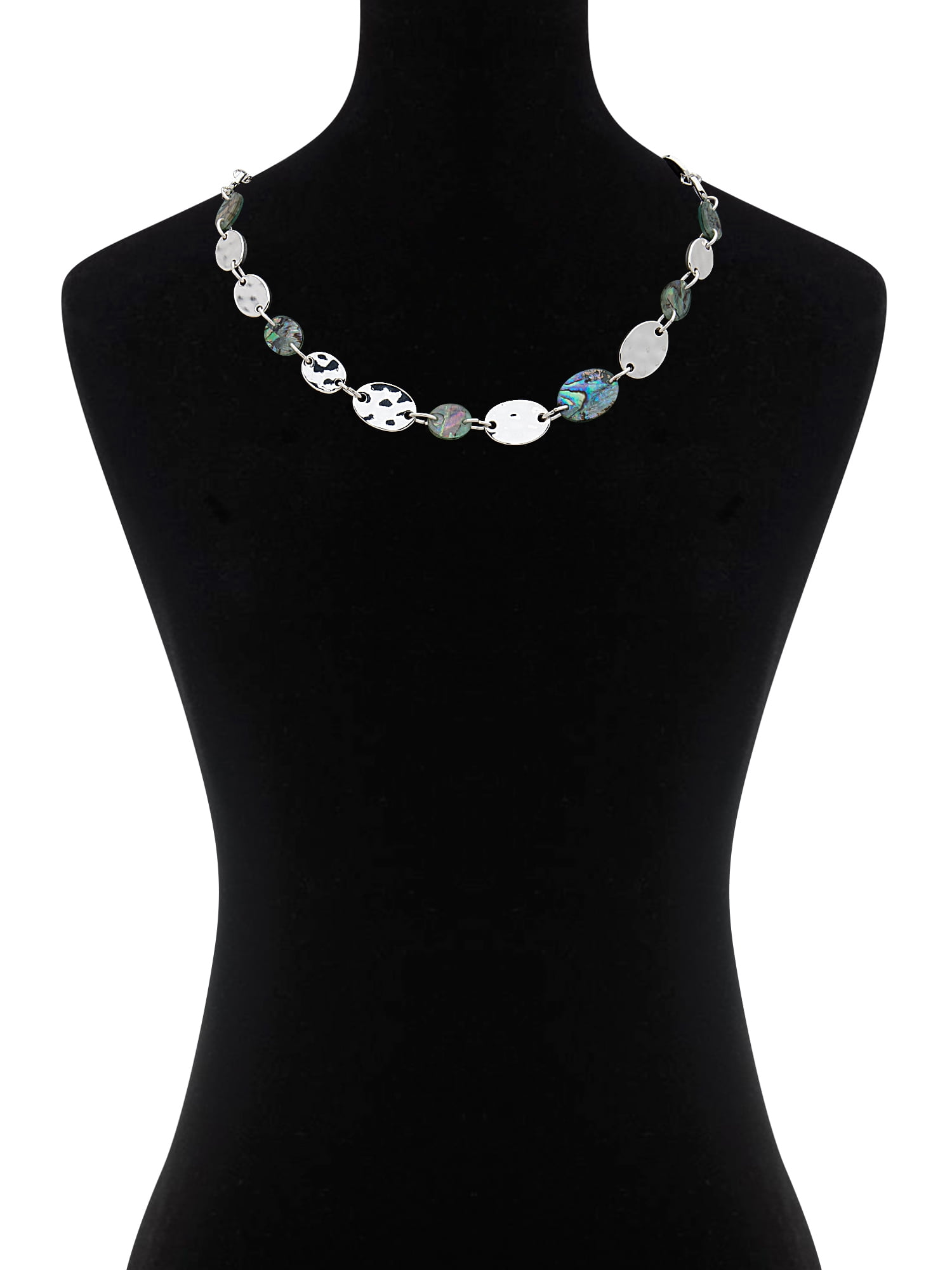 Chaps Silver Tone Abalone Collar Necklace, 17"