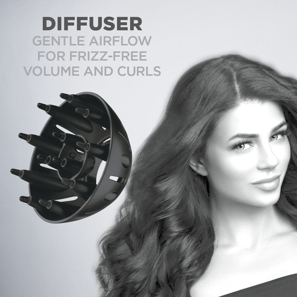 Give your hair long-lasting volume quickly and quietly with this sleek and versatile 1875w Conair Turbo Styler Ionic Hair Dryer. With excellent heat and airflow driven by the quiet-tone motor, this Conair Ionic conditioning hair dryer uses turbo action and ion output to boost volume and condition your hair. With a concentrator and diffuser included, this Conair hair dryer also has a cool shot button for that moment when you want to lock in your next look. The handy hang loop attached to this accessory makes for simple wall storage. No matter the texture of your hair, this ionic hair dryer lends easy options for styling and shaping.