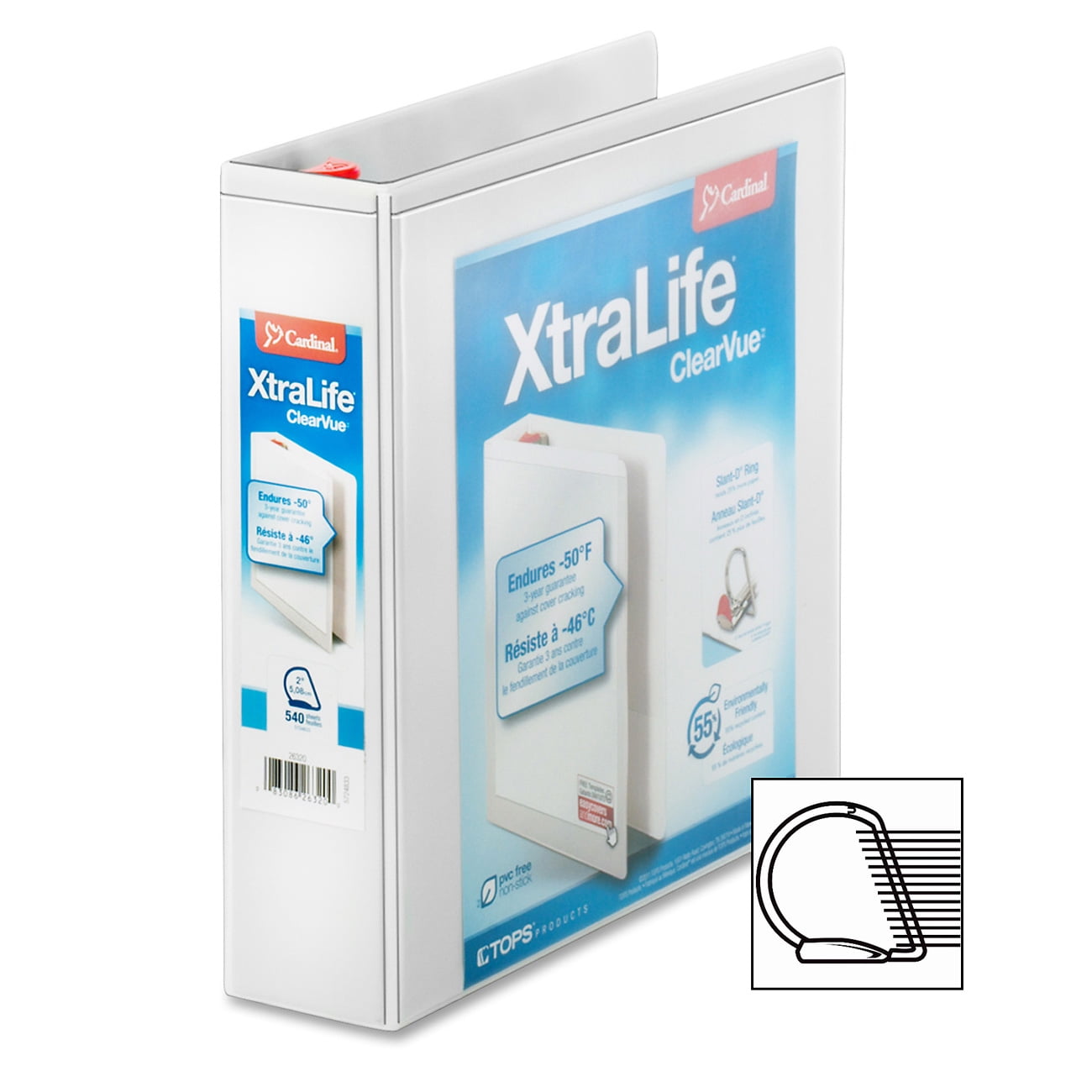 Cardinal XtraLife ClearVue Non-Stick Locking Slant-D Binder, 2′ Cap, 11 x 8 1/2, White