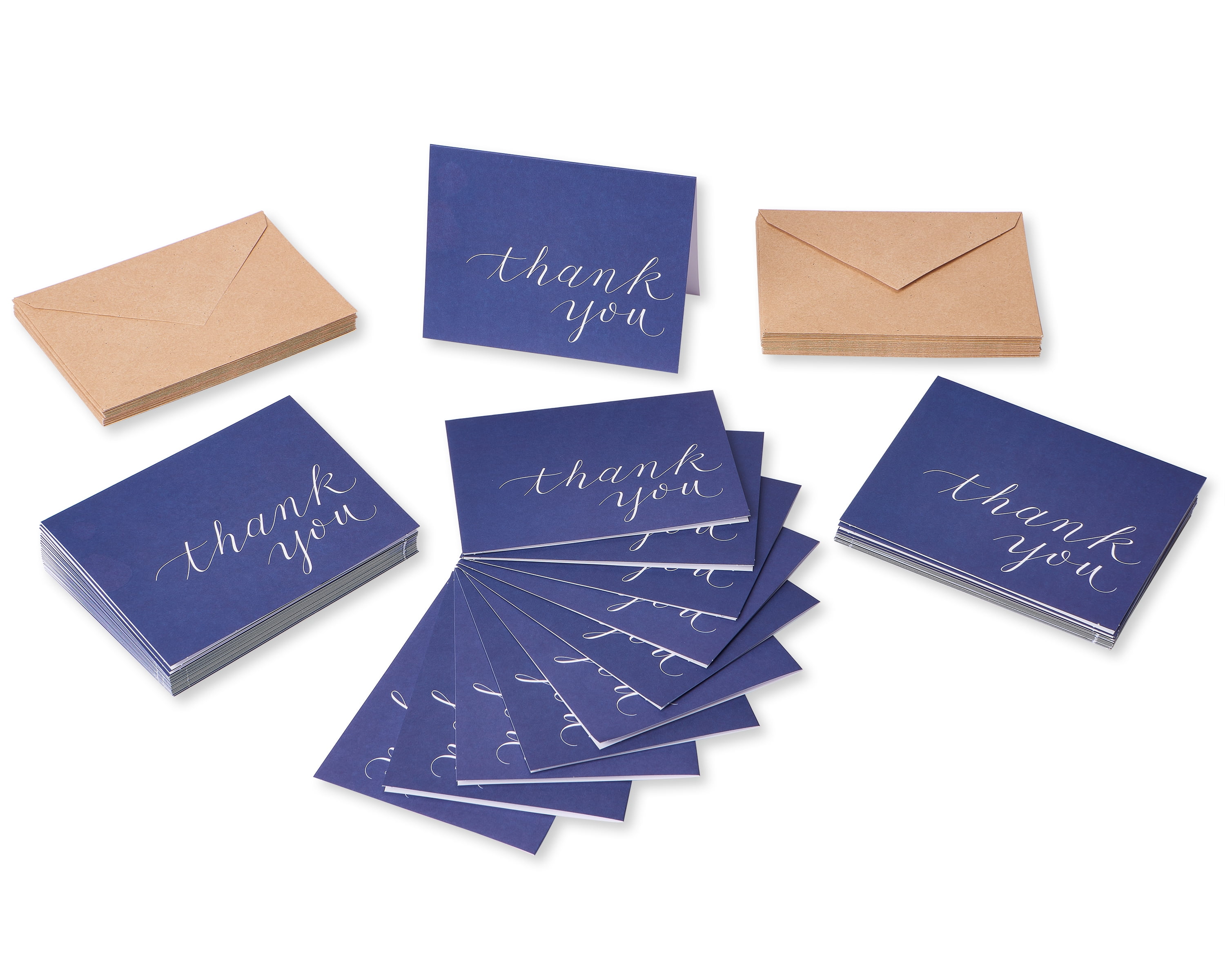 American Greetings Navy Blue Thank You Cards and Brown Kraft-Style Envelopes, 5.25′ x 4′, 50-Count