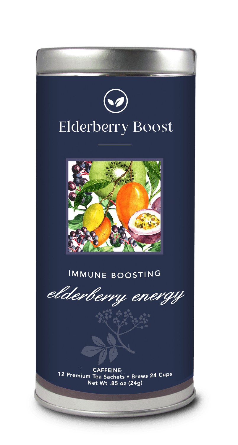 Elderberry Energy is a fruity and refreshing Green Tea, blended with immune boosting Elderberries, and the tropical flavors of Mango, Kiwi, and Passion Fruit. This tea is stock full of Vitamins A, B, and C.