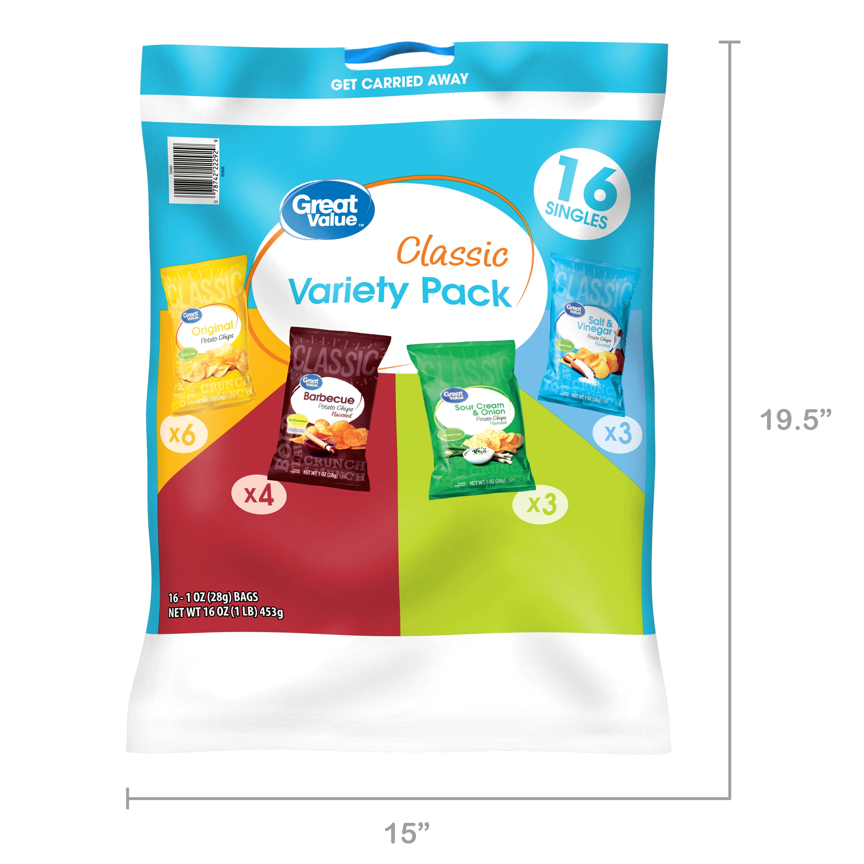 Great Value Classic Potato Chip Variety Pack, 16 Count: