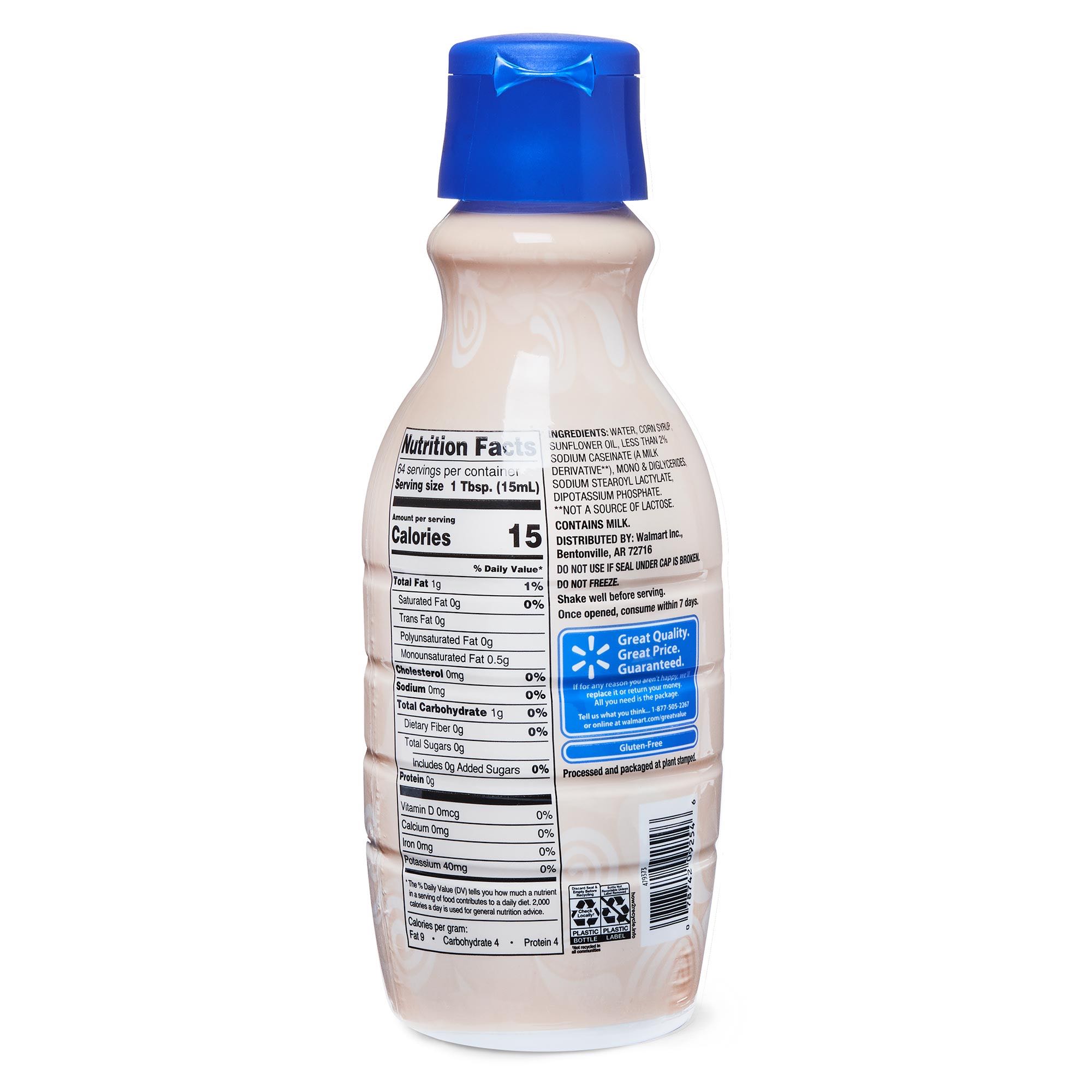Turn your ordinary cup of joe into an extraordinary delight with Great Value Original Coffee Creamer. Our delicious coffee creamer adds a velvety, milky richness to your morning brew that will transform any regular cup of coffee. With only 15 calories per tablespoon, this creamer is a great way to enjoy an indulgent beverage for a fraction of the calories. Make your mornings magical with Great Value Original Coffee Creamer.Great Value products provide families with affordable, high quality grocery and household consumable options. With our wide range of product categories spanning grocery and household consumables, we offer you a variety of products for your family’s needs.