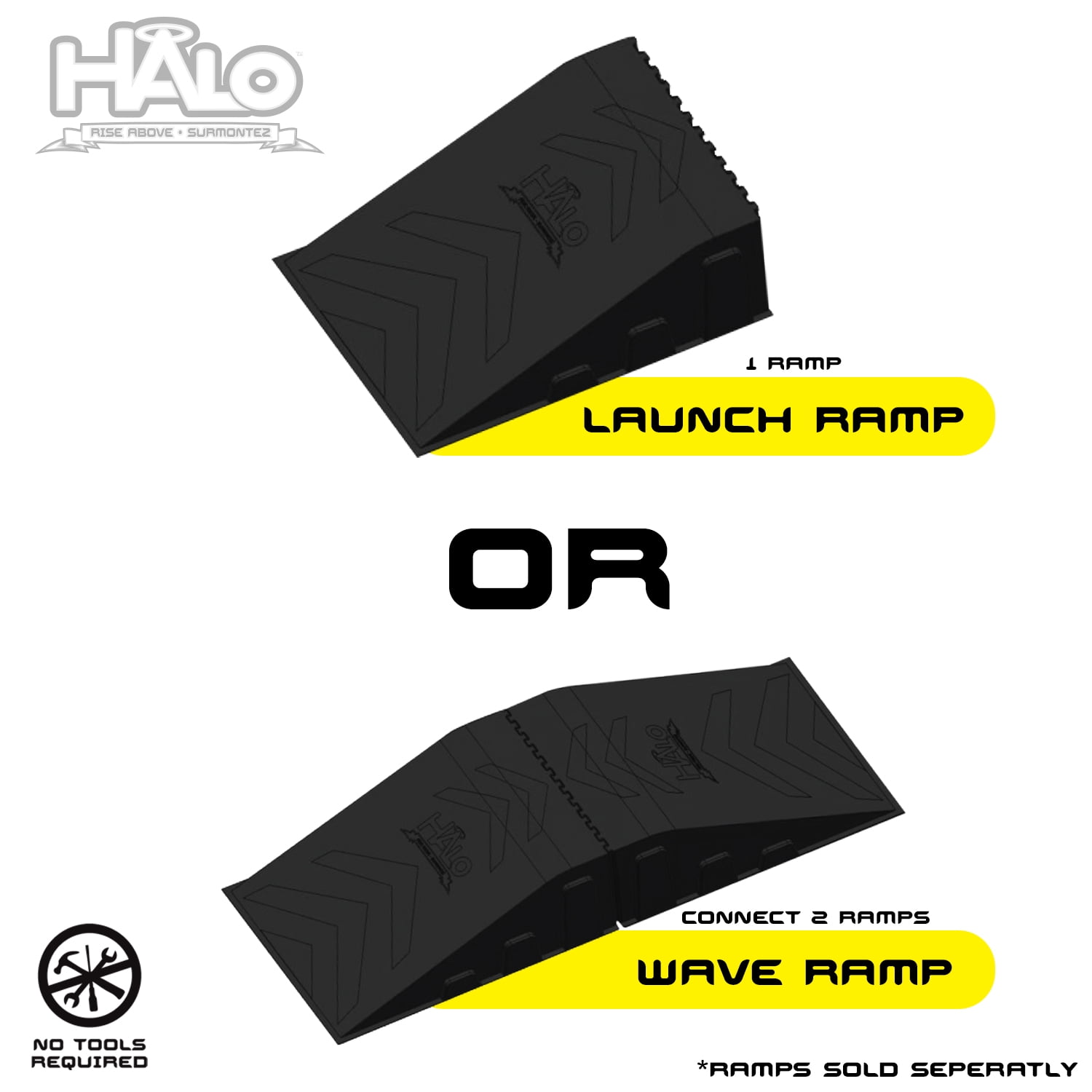 HALO Rise Above Multi-Sport Launch Ramp – Ramp Dimensions 19′ L x 6′ H x 15′ W – Maximum Incline 17.5° – Connect 2 to make a wave ramp!