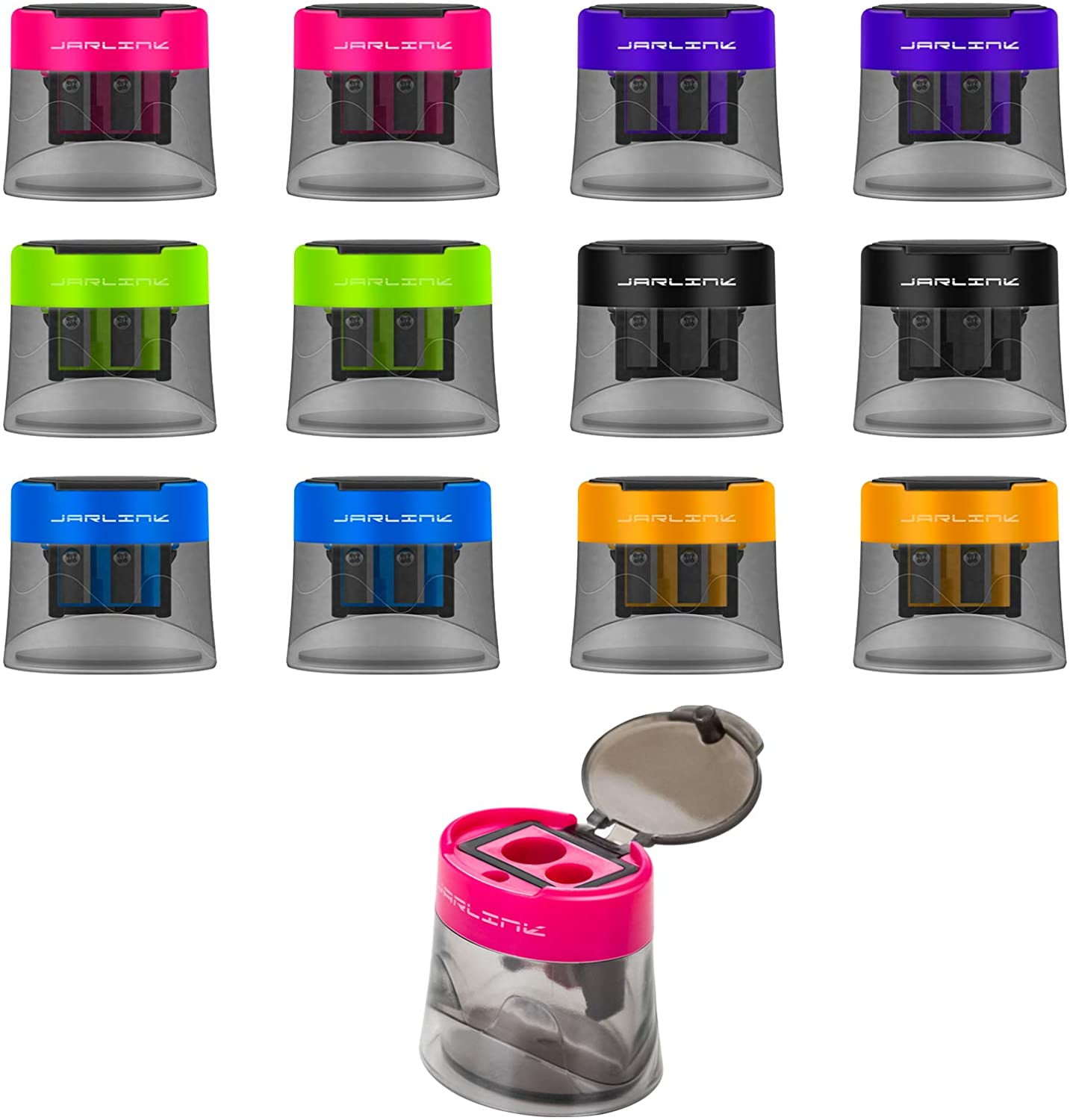 JARLINK 12 Pack Manual Pencil Sharpener, Dual Holes Compact Sharpener with Lid for No.2/Colored/Art Pencils, Portable in School Office Home