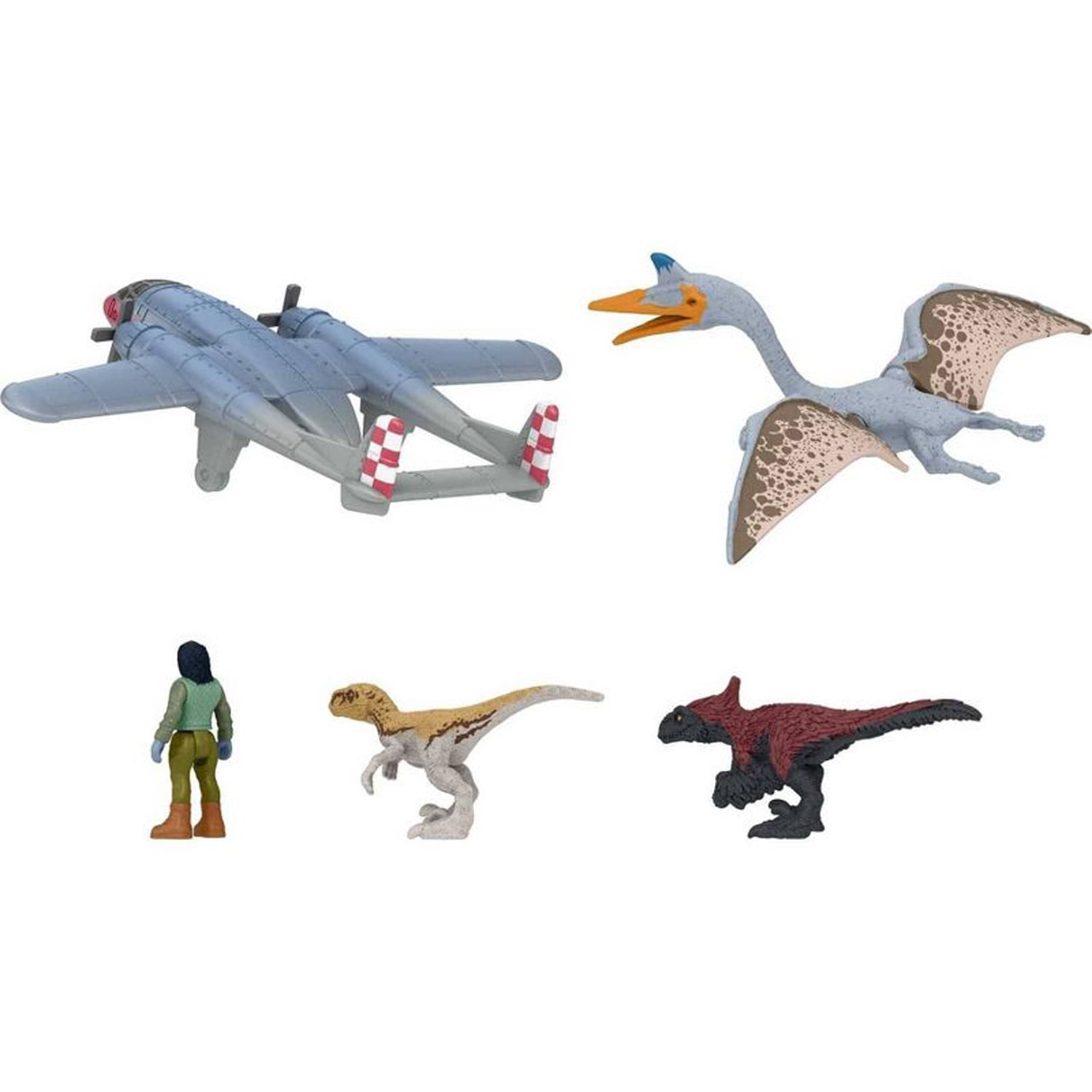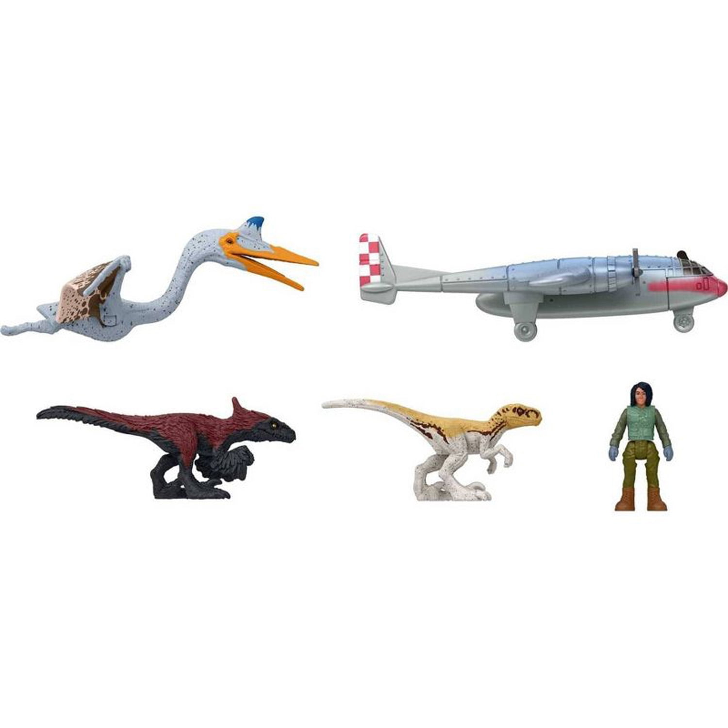 Get ready for thrilling action and adventure with Jurassic World: Dominion! These multi-packs of 5 different mini figures, inspired by the movie, make an instant collection! Each pack includes dinosaurs as well as a human figure to enable storytelling. The dinosaur figures included feature stylized design and come in a variety of sizes, within a 1.125 inch scale, for authentic dinosaur battling. All the figures are sized to go anywhere, great for trips across town or cross-country. The dinosaurs included range from well-known favorites to some introduced in Jurassic World: Dominion. Makes a great gift for 3 year olds and up.Jurassic World MINIS Flight Or Fight Figure 5-Pack