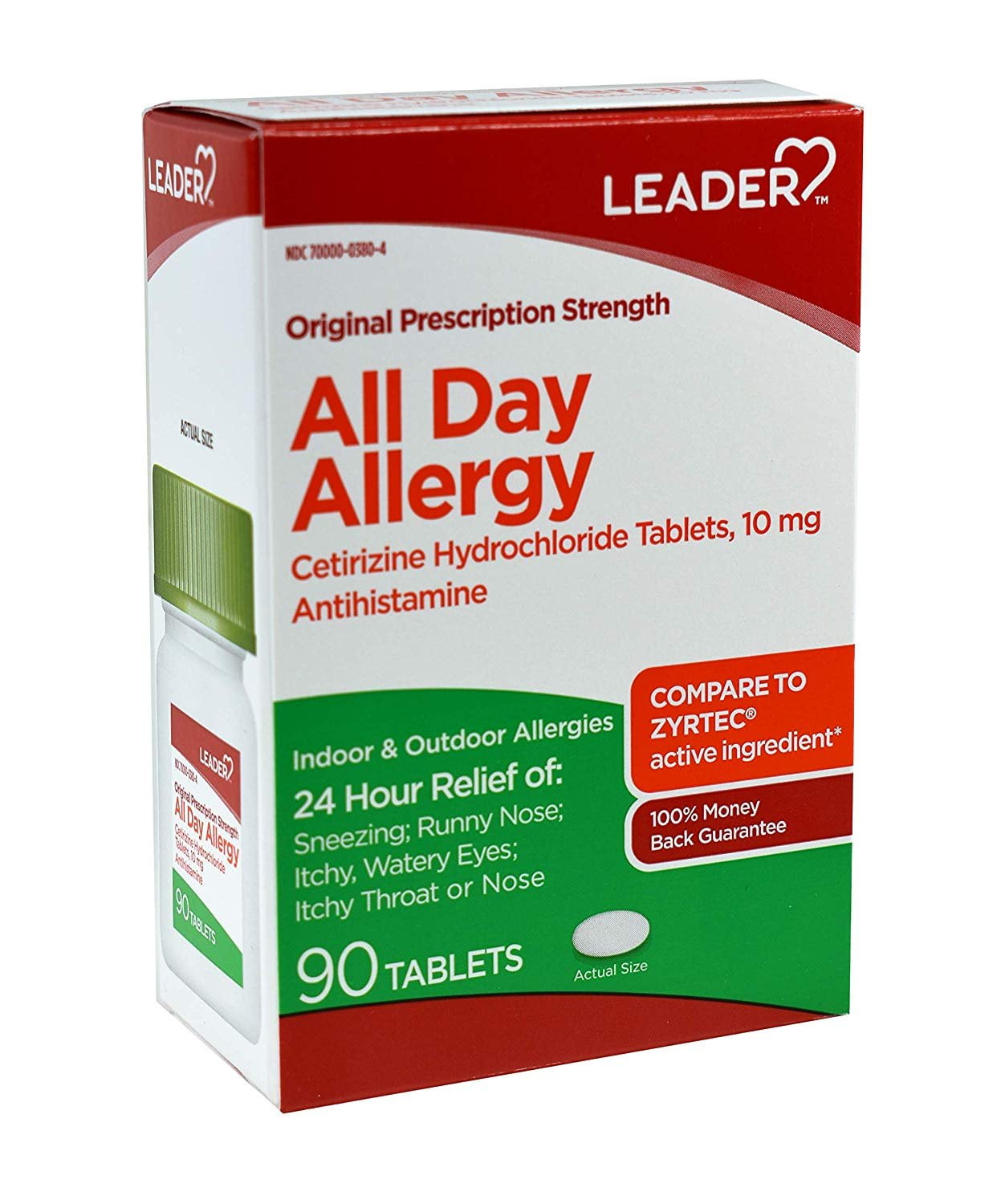 - One dose of Cetirizine Hydrochloride 10 mg tablets, works for a full 24 hours to relieve allergy symptoms