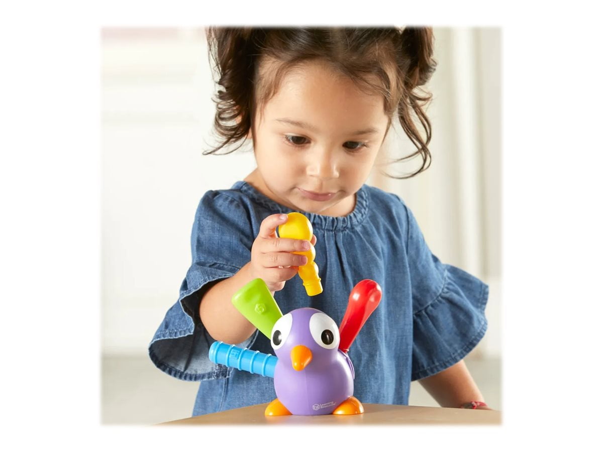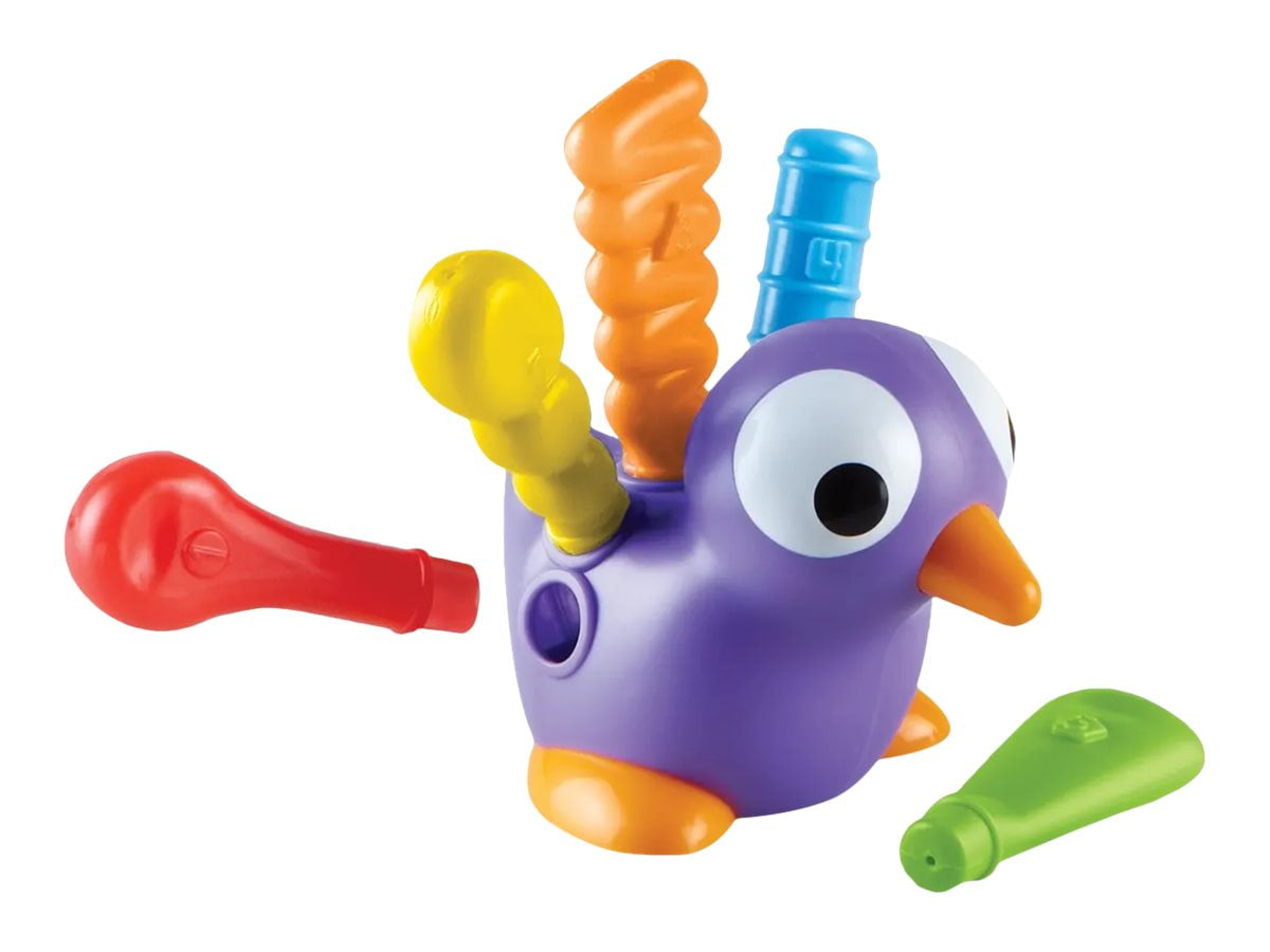 Fine motor fun bever looked so fancy! Kids build the essential fine motor skills they need to succeed in school and beyond every time they play with Pedro the Fine Motor Peacock from Learning Resources. The friendliest fine motor toy for toddlers, this fine feathered peacock comes with 5 pinchable, pullable feathers. With push-in, pop-out play, these feathers make it easy for kids to build their hand strength, coordination, and other essentials of fine motor skill development. Pedro’s feathers also come with a 4-in-1 learning surprise—in addition to building fine motor skills, feathers also come with unique textures that support tactile play, and introduce kids to early color matching and number recognition skills thanks to their vibrant designs and 1–5 numbered surfaces. Pedro’s feathers are sized just right for little hands, making them easy to grasp and explore. When the fine motor fun is finished for the day, Pedro’s durable plastic feathers also wipe clean for easy storage!Learning Resources Pedro the Fine Motor Peacock