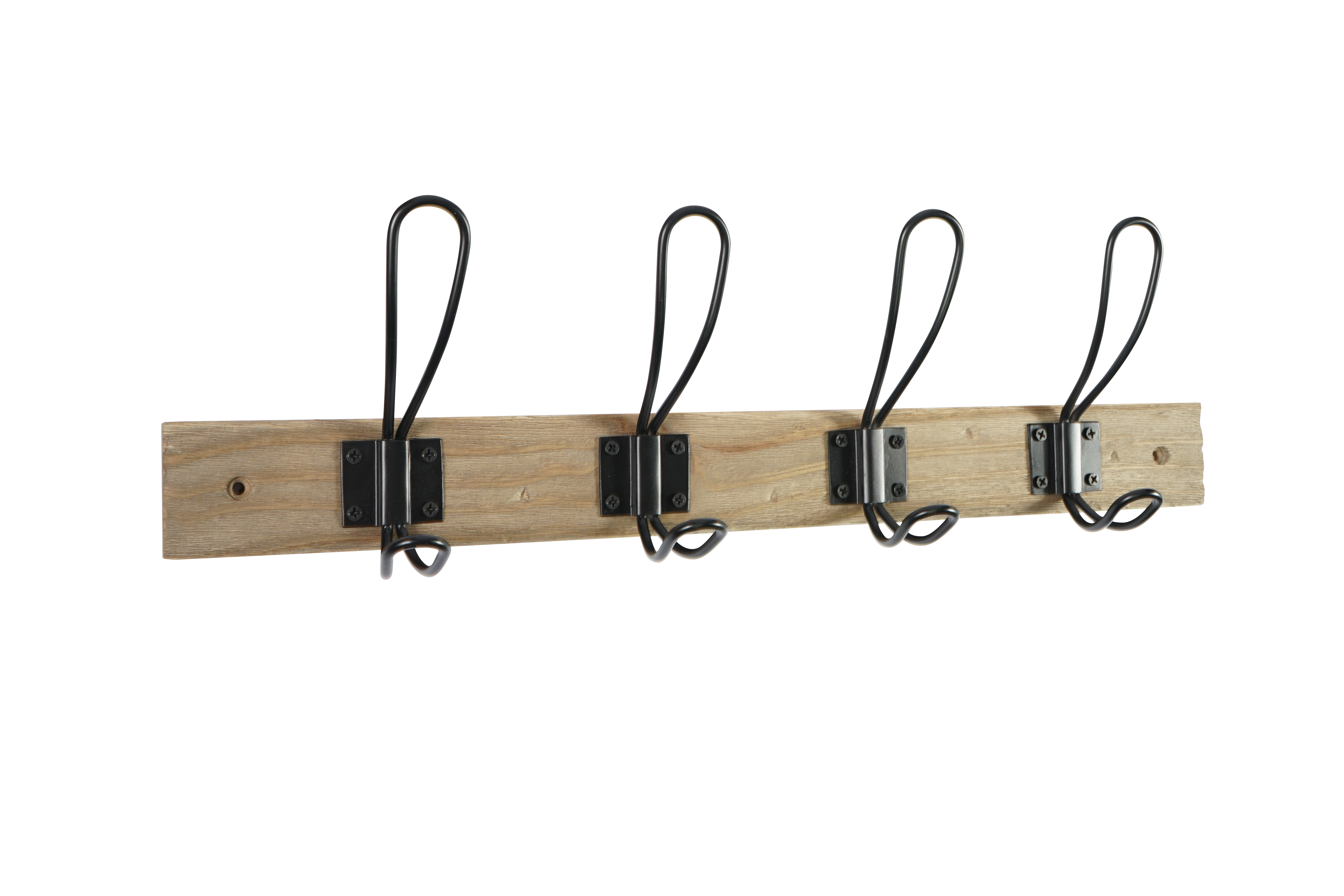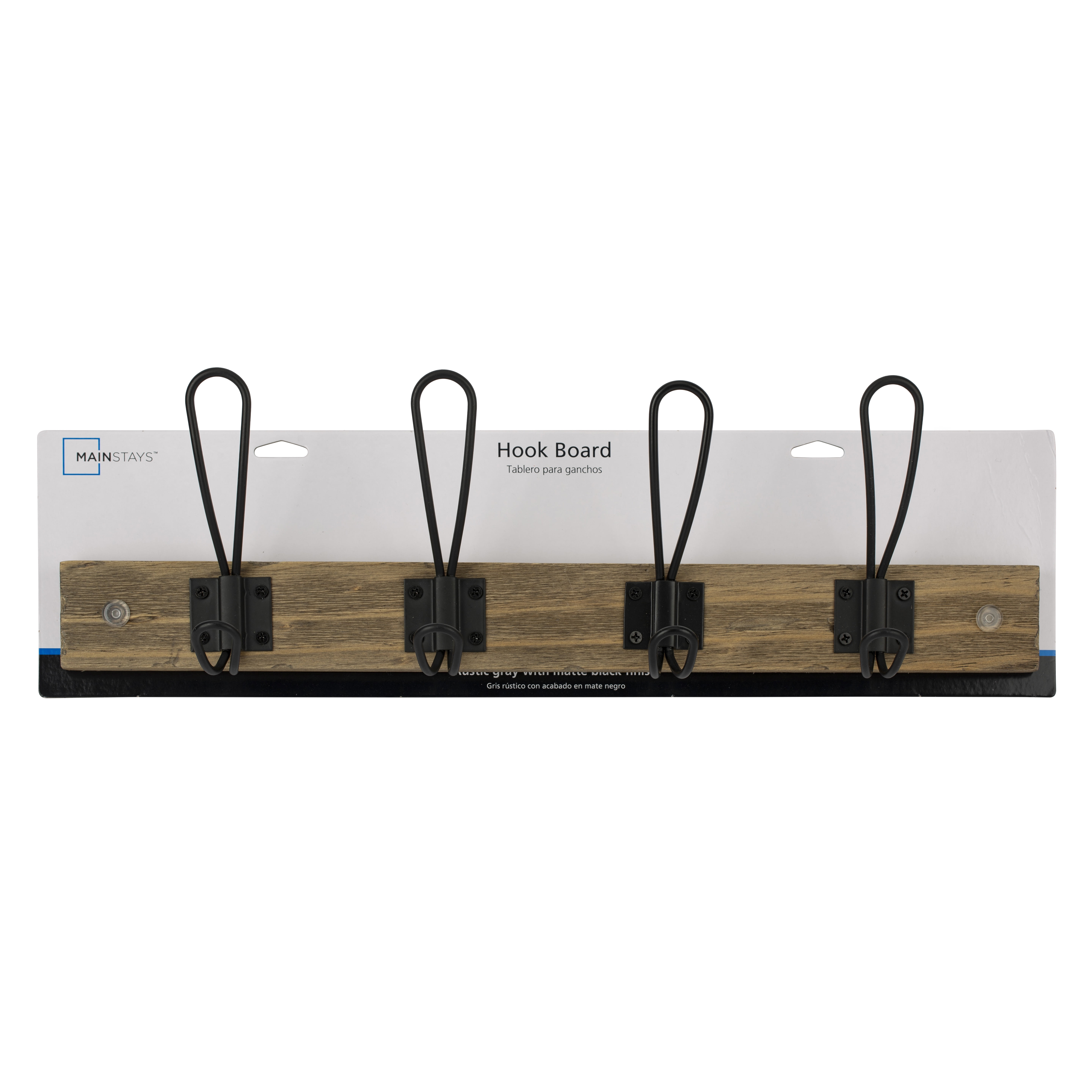 Mainstays 18 in. Wall Mounted Farmhouse Hook Rack, 4 Hooks, Rustic Gray with Matte Black