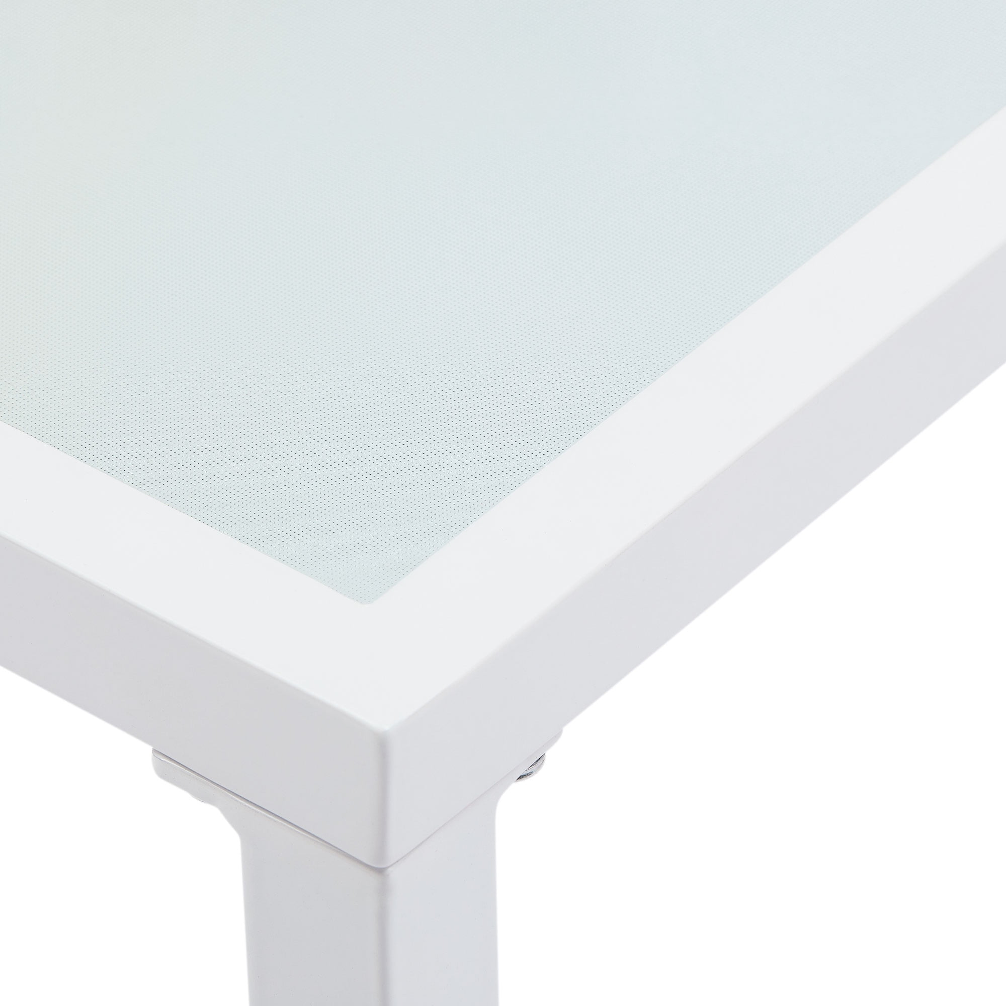 - Everything is constructed with a durable powder-coated steel frame with a matte white finish for lasting outdoor use