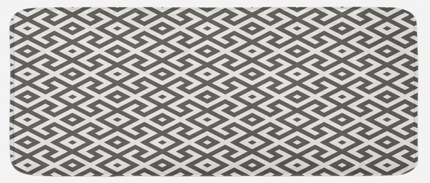 Modern Kitchen Mat, Graphic Style Geometrical Image with White Borders and Antique Lines Print, Plush Decorative Kitchen Mat with Non Slip Backing, 47′ X 19′, White and Army Green, by Ambesonne