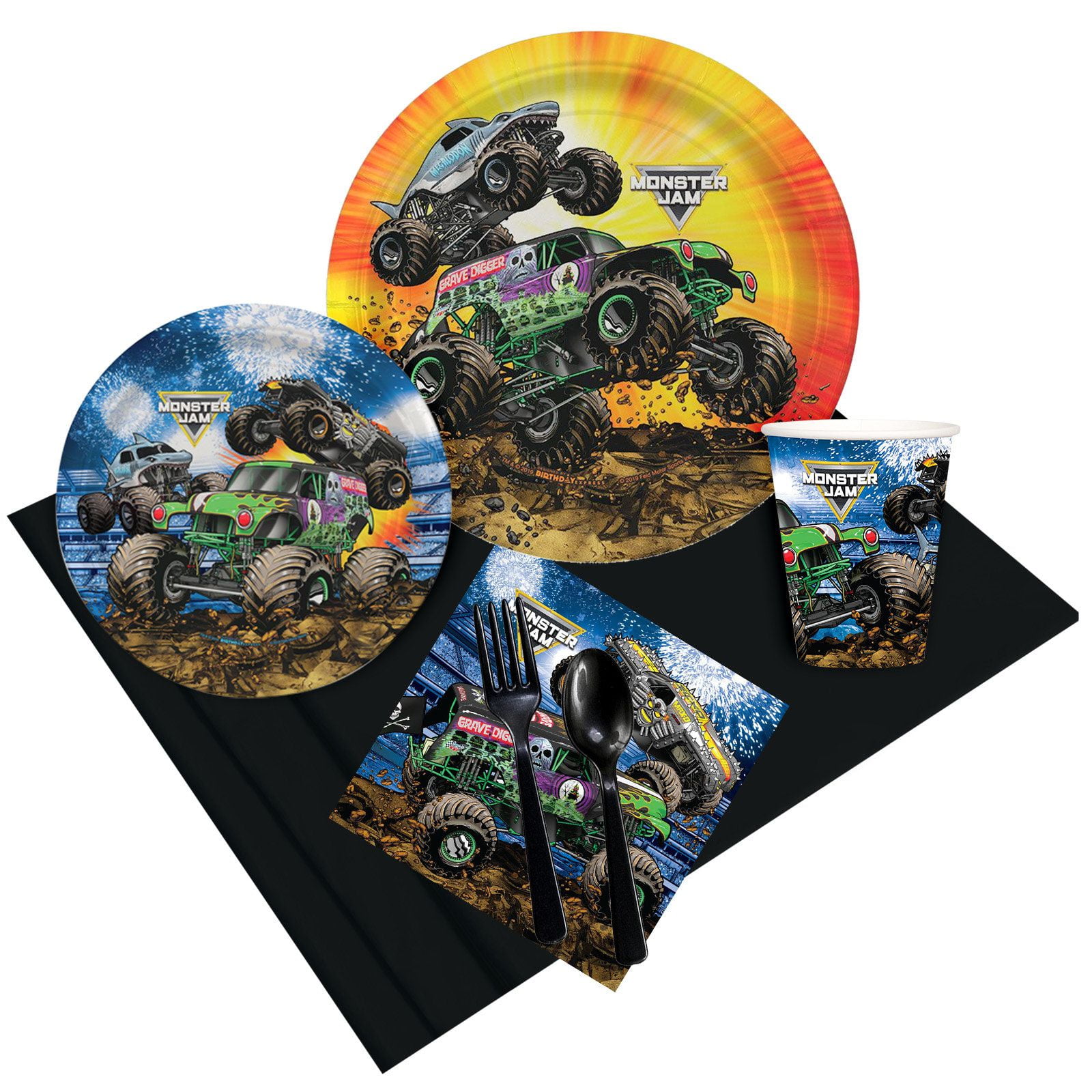 Grave Digger will be Rev’ing Up your Monster Jam theme Party with this Monster Jam Grave Digger Party Pack for 8. Includes: Monster Jam Grave Digger Party Dinner Plates (8), Monster Jam Grave Digger Party Dessert Plates (8), Monster Jam Grave Digger Party 9 oz. Paper Cups (8, Monster Jam Grave Digger Party Lunch Napkins (20), Forks & Spoons – Black (8 each), Black Velvet (Black) Plastic TablecoverMonster Jam Grave Digger Party Pack for 8