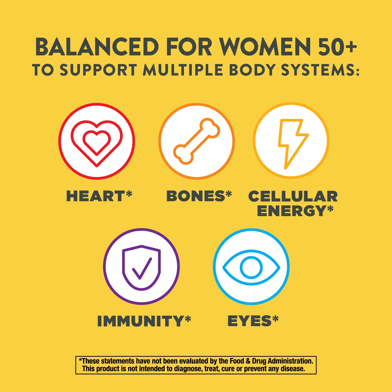 - Complete daily multivitamin optimized for women age 50+, formulated with 100% or more Daily Value of 19 essential vitamins and minerals.*