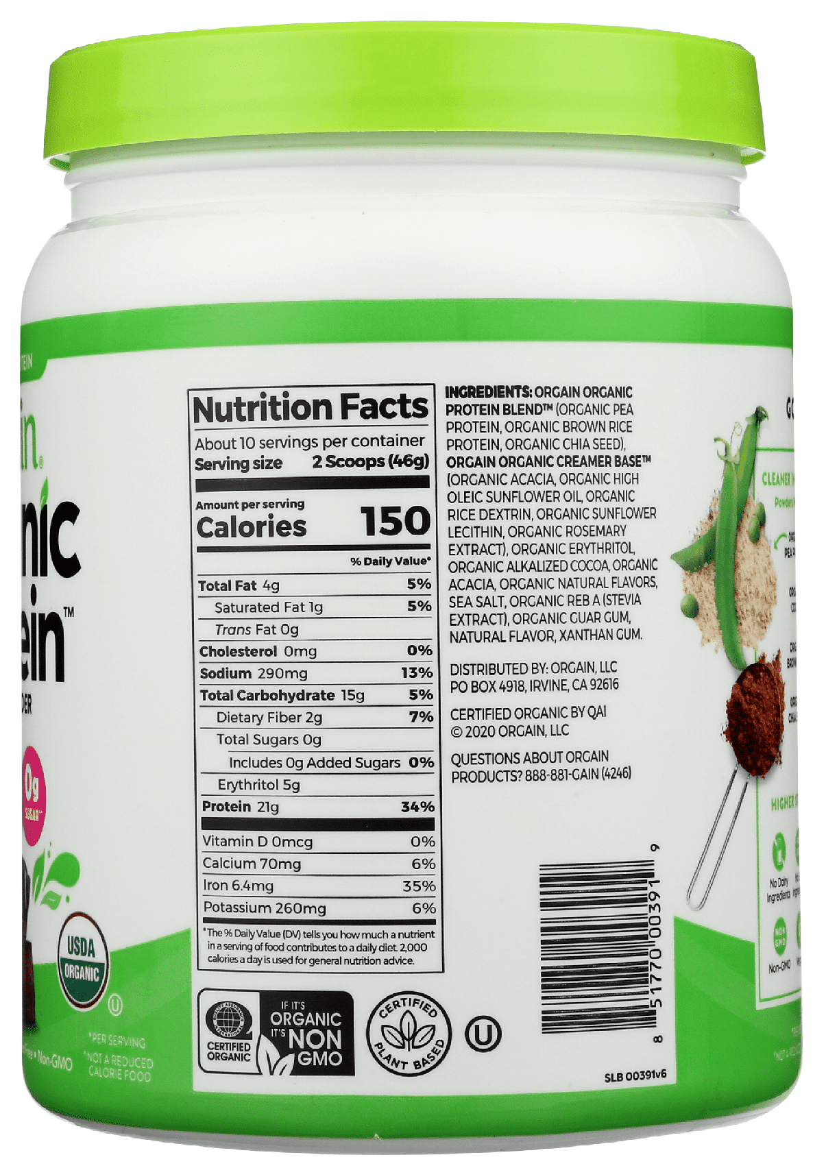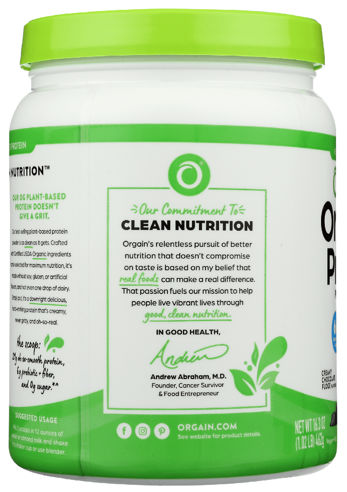 Orgain Plant Based Powder, Creamy Chocolate Fudge, 1.02 LbDOCTOR DEVELOPED ORGANIC NUTRITION***I CREATED ORGAIN WITH ONE SIMPLE GOAL IN MIND – TO CREATE THE HEALTHIEST, MOST NUTRITIOUS PRODUCTS IN THE WORLD. AFTER TRYING NEARLY EVERY PROTEIN POWDER ON THE MARKET, NONE HAD THE PERFECT COMBINATION OF NUTRITION AND TASTE…UNTIL NOW. INTRODUCING ORGAIN ORGANIC PROTEIN™ IN GOOD HEALTH, ANDREW ABRAHAM, M.D. PHYSICIAN AND CANCER SURVIVOR***ORGANICALLY NUTRITIOUS™***WHAT”S INSIDE ORGANIC PLANT BASED PROTEIN ORGANIC FIBER ORGANIC CHIA AMINO ACIDS DOCTOR DEVELOPED VEGAN***WHAT”S NOT INSIDE DAIRY SOY GLUTEN LACTOSE GMO***WHO CAN USE IT BUSY PROFESSIONALS MOM ON-THE-GO ATHLETES KIDS* WEIGHT MANAGEMENT *USE 1/2 SERVING (1 SCOOP) FOR CHILDREN 4 YEARS AND OLDER.***DOCTOR DEVELOPED ORGANIC NUTRITION***I CREATED ORGAIN WITH ONE SIMPLE GOAL IN MIND – TO CREATE THE HEALTHIEST, MOST NUTRITIOUS PRODUCTS IN THE WORLD. AFTER TRYING NEARLY EVERY PROTEIN POWDER ON THE MARKET, NONE HAD THE PERFECT COMBINATION OF NUTRITION AND TASTE…UNTIL NOW. INTRODUCING ORGAIN ORGANIC PROTEIN™ IN GOOD HEALTH, ANDREW ABRAHAM, M.D. PHYSICIAN AND CANCER SURVIVOR***ORGANICALLY NUTRITIOUS™***WHAT”S INSIDE ORGANIC PLANT BASED PROTEIN ORGANIC FIBER ORGANIC CHIA AMINO ACIDS DOCTOR DEVELOPED VEGAN***WHAT”S NOT INSIDE DAIRY SOY GLUTEN LACTOSE GMO***WHO CAN USE IT BUSY PROFESSIONALS MOM ON-THE-GO ATHLETES KIDS* WEIGHT MANAGEMENT *USE 1/2 SERVING (1 SCOOP) FOR CHILDREN 4 YEARS AND OLDER.