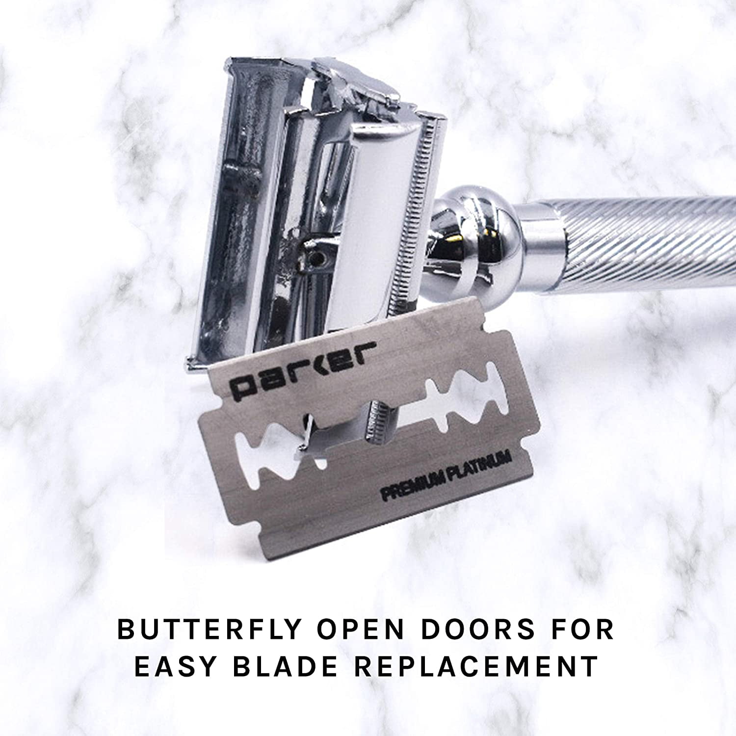 Parker 99R Butterfly Open Double Edge Safety Razor & 5 Double Edge Razor Blades