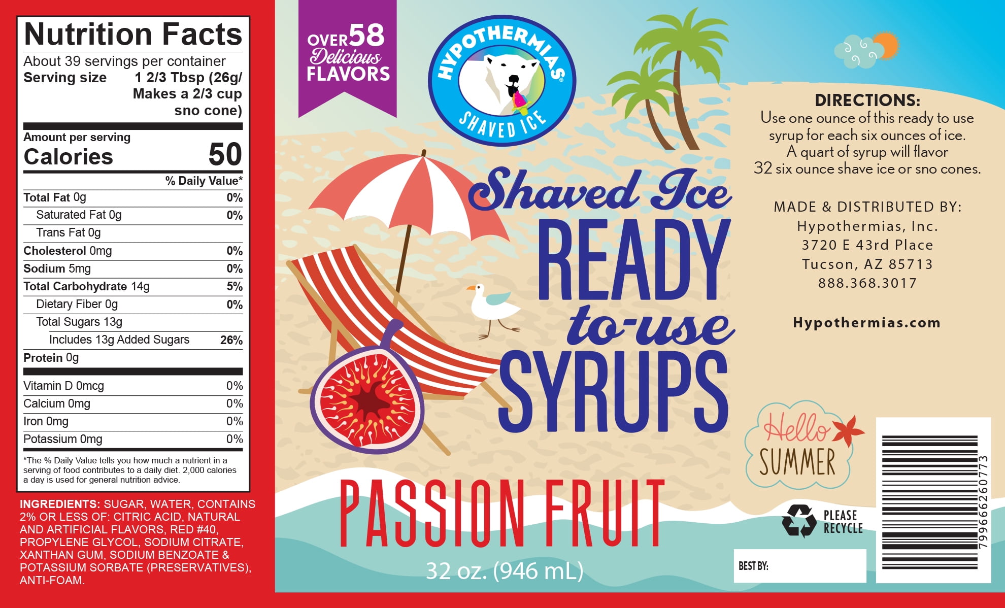 Fruity and tart with a complex, sweet, tropical flavor, Hypothermias Passion Fruit shaved ice flavor syrup makes an exotic shave ice or snow cone. Pair with Coconut, Banana or Guava for a delicious and unique Hawaiian shave ice at your next party, carnival, event or fair.