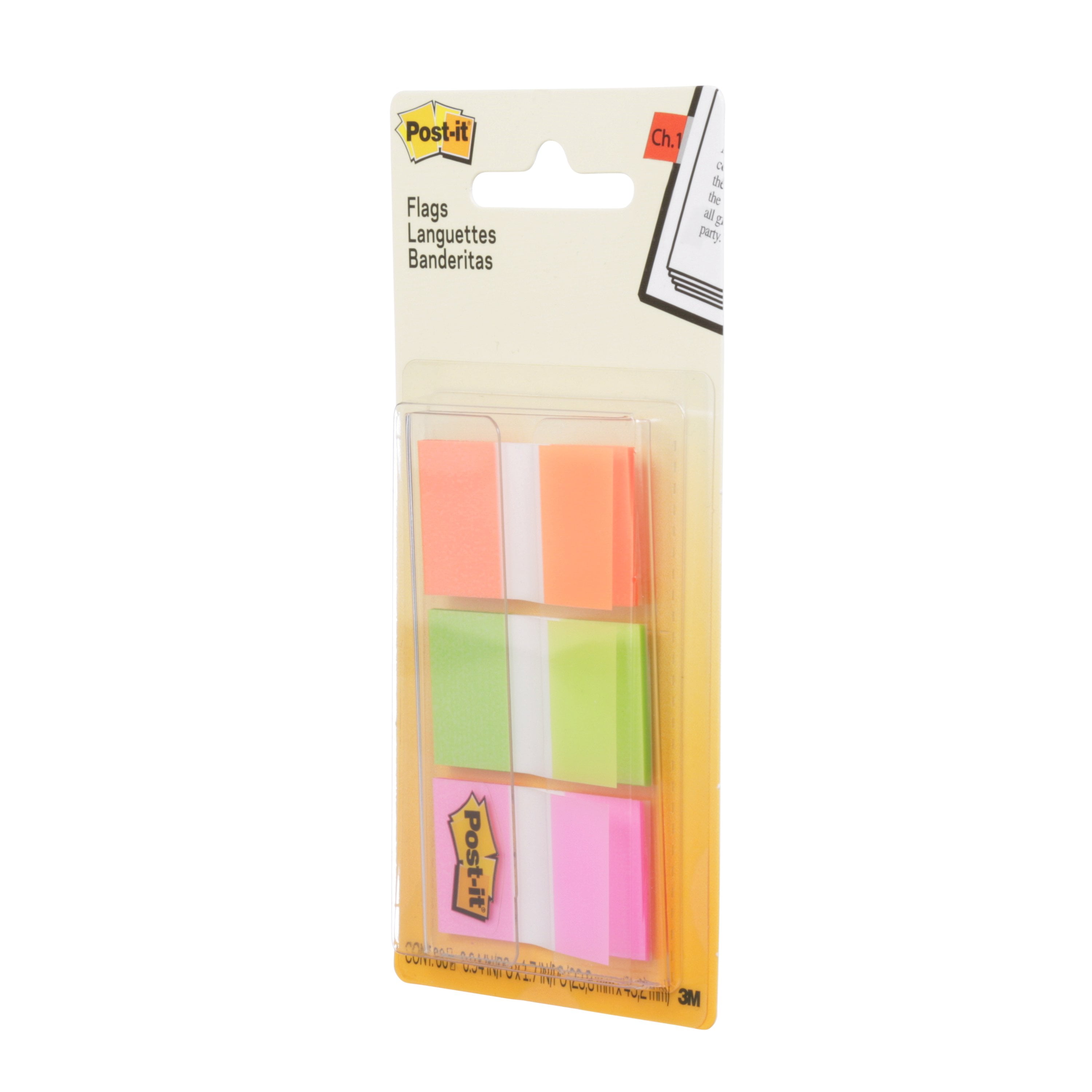 Find it fast with Post it Flags in bright eye-catching colors that get noticed. They make it simple to mark or highlight important information in textbooks, calendars, notebooks, planners and more. They stick securely, remove cleanly and come in a wide variety of colors. Draw attention to critical items or use them to index, file or color code your work, either at home, work or in the classroom. Try with Post-it Notes for the ultimate study duo. Contains 60/On the Go Dispenser and 1 Dispenser/Pack.