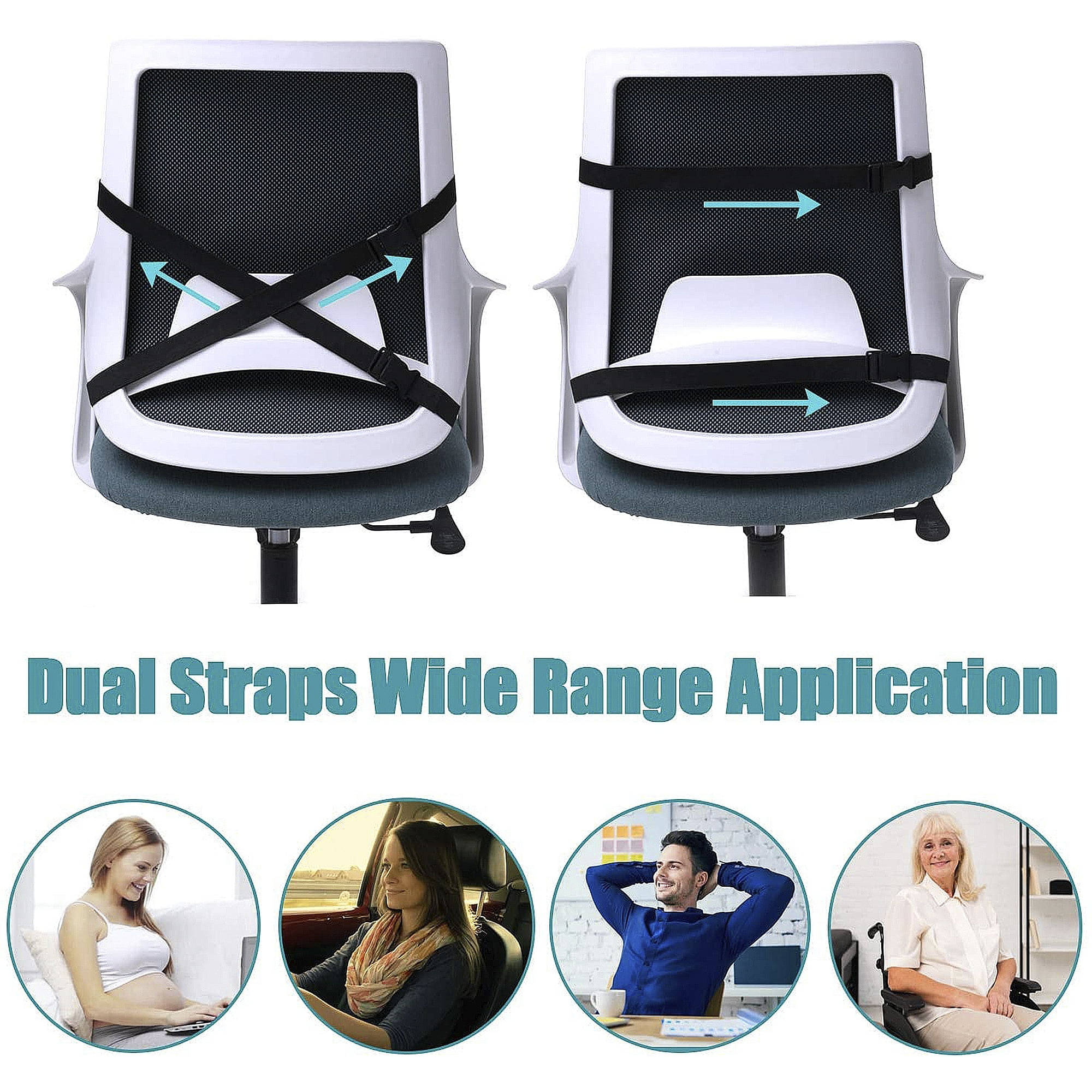 Upgrade & Unique Back Support Pillow: If you spend a lot of time sitting on an office chair, or gaming chair, and driving in the car, this black lumbar pillow will perfectly help you. The back support for the car is designed ergonomically to relieve upper, mid, and lower back pain and back tightness, support you to achieve a healthy posture and help maintain the natural curve of the spine.NEVER FLATTENS OUT: Qutool lumbar support for cars adopts High density, thick, durable fabulous, and precisely molded memory foam which insures a firm comfy fit and enhances your comfort while retaining its density. The chair pillow can provide enough support and is more comfortable than lumbar roll or mesh back support, and can also be used as a maternity pillow or as a back pillow wedge during pregnancy. Ideal for drivers, teachers, students, people in a wheelchair, office workers, the elder, etc.HOLD in PLACE: Unlike other low-quality office chair pillows on the market, the new Qutool lumbar cushion has two adjustable straps and two extension straps, so they will keep your desk chair support in place no matter how much you move around, and two extension straps will make the backrest secured tightly on any office chair, desk chair, computer chair, sofa, couch, car seat, SUV, truck, wheelchair, and recliner or other bigger chairs home office accessories.BREATHABLE & HYPOALLERGENIC 3D MESH COVER: With a removable and machine washable mesh cover, this wheelchair back cushion can keep air circulation well and always keep your back cool and comfortable, dry for the best experience, so sweat and moisture doesn’t fill it up, suitable for all seasons.Tips: Since it’s temperature sense memory foam support, it’s normal that cushions become harder in low temperatures, cushion’s softness will be adjusted by the user or environment temperature, thus it can give good support and perfect posture well.