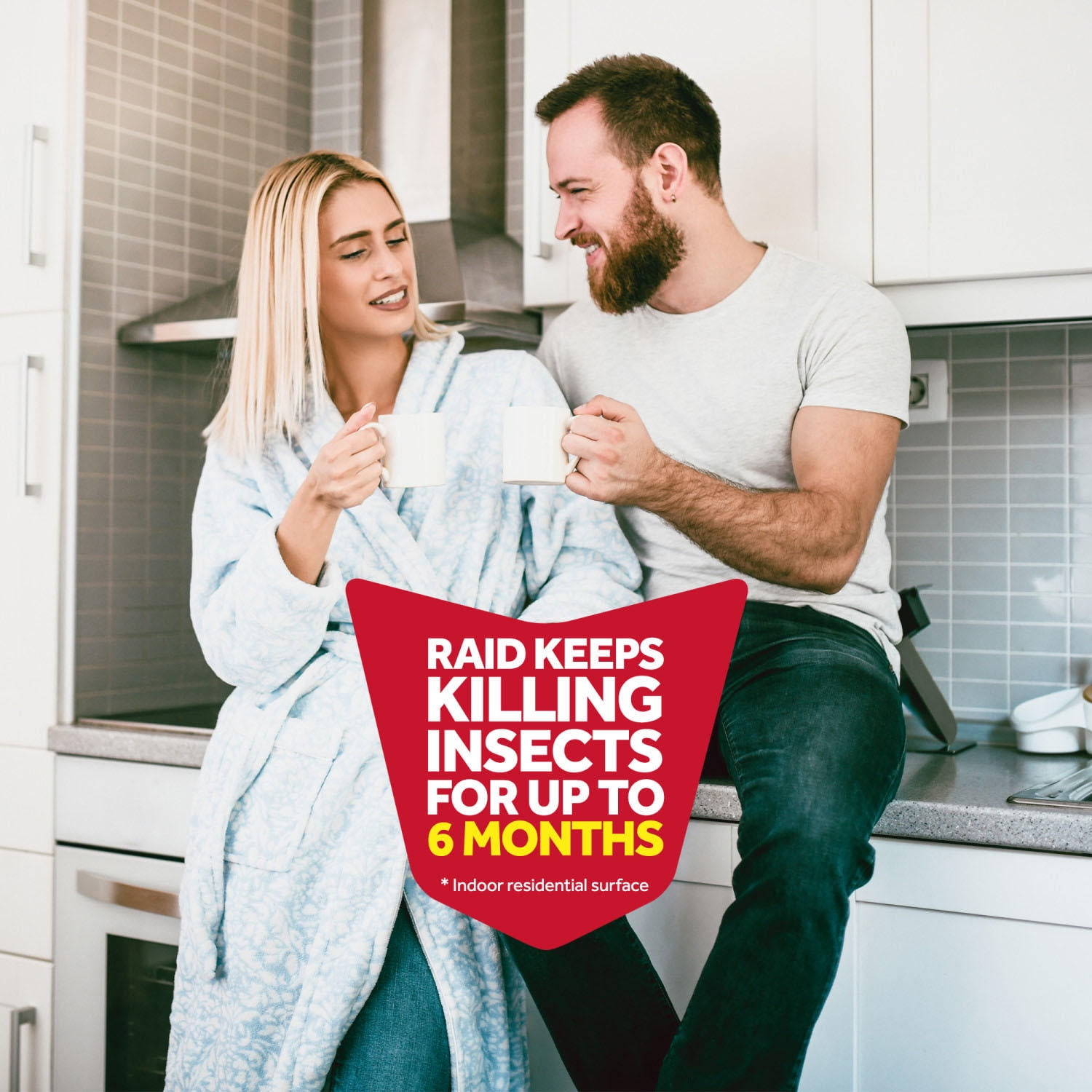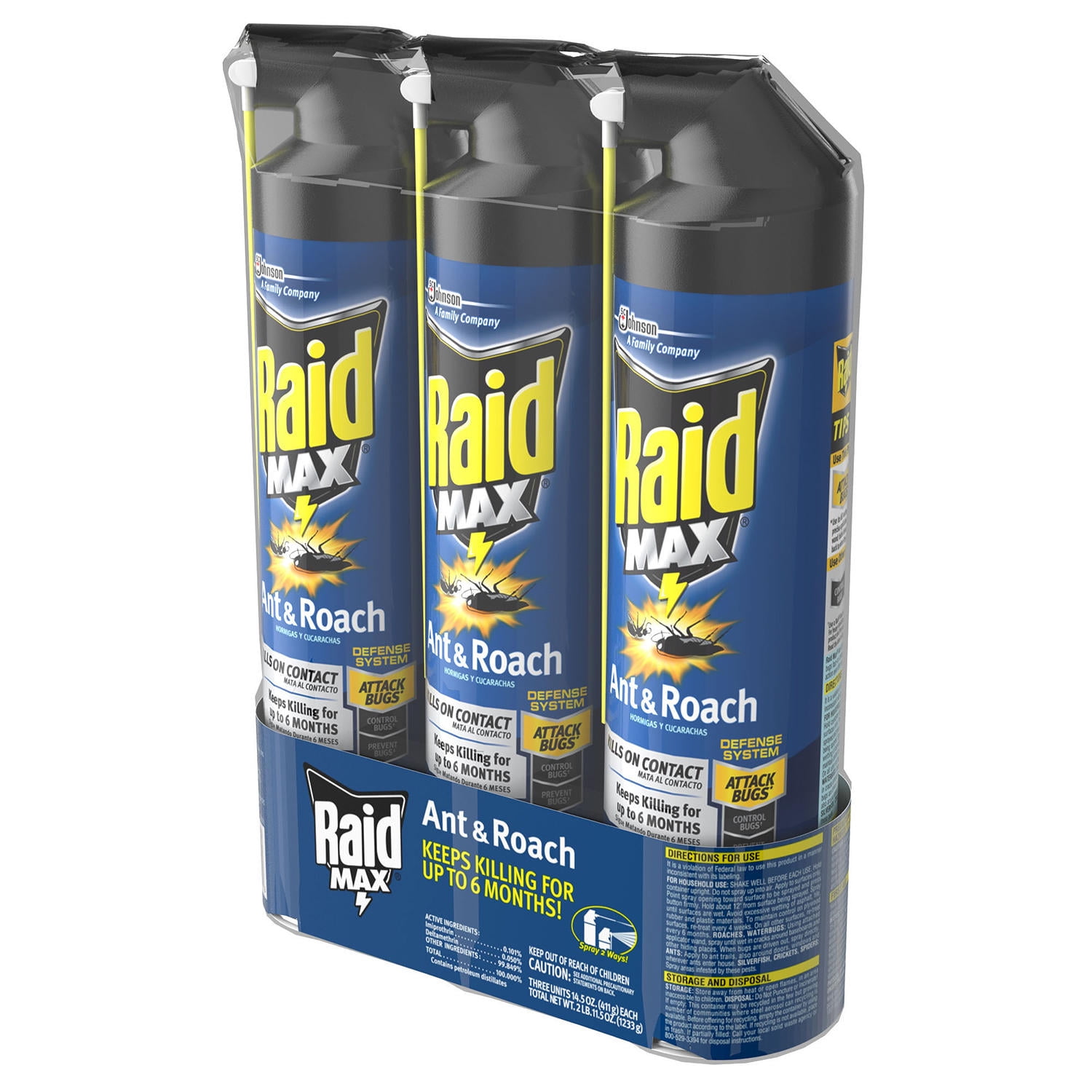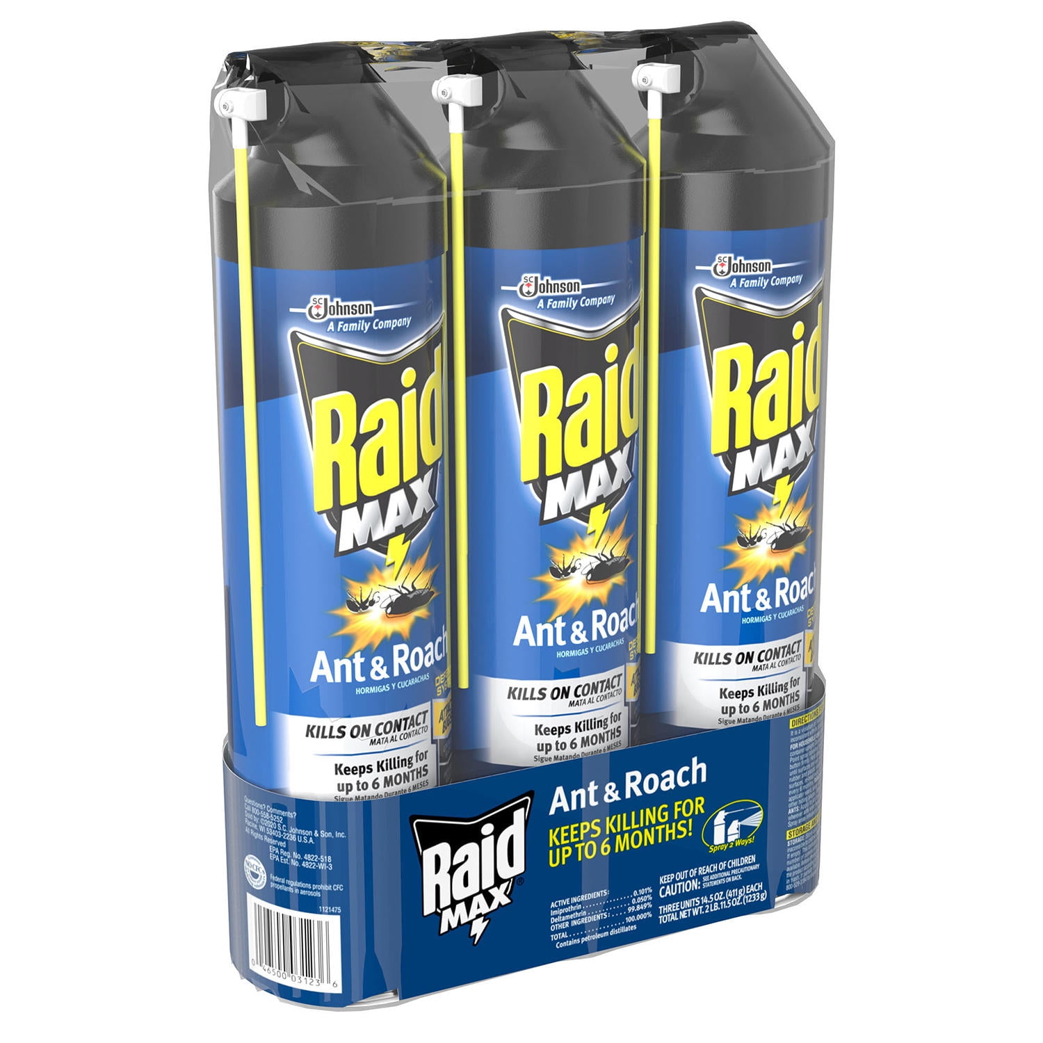 - Raid Max Ant and Roach Spray kills bugs on contact and keeps killing with residual action for up to 6 months