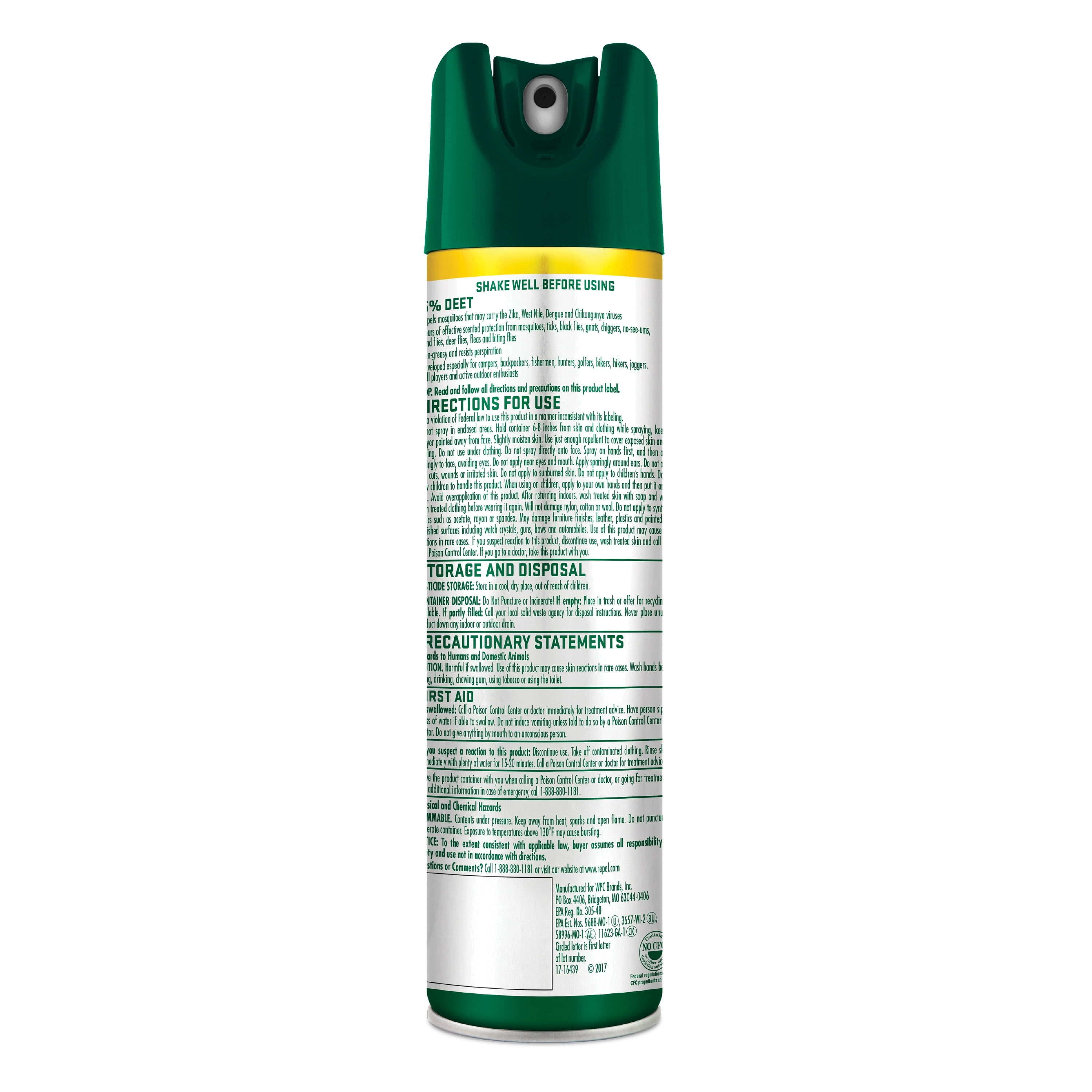 Outdoor enthusiasts know that when the going gets tough, so should their insect repellent. However extreme the activity or terrain, there’s a Repel insect repellent designed to offer dependable coverage that lasts as long as you need it to. Repel products make effective mosquito protection simple under any circumstance so you can heed the call of the wild wherever the trail takes you. Repel Insect Repellent Scented Family Formula aerosol contains 15% DEET for scented protection from mosquitoes, including those that may transmit Zika, West Nile, Dengue and Chikungunya viruses. This formula also offers hours of effective protection from ticks, black flies, gnats, chiggers, no-see-ums, sand flies and fleas. The formula resists perspiration and provides coverage without leaving you oily or greasy. It was developed especially for campers, backpackers, fishermen, hunters, golfers, bikers, hikers, joggers, ball players and active outdoor enthusiasts. Spray on to lightly moisten skin. Use just enough repellent to cover exposed skin and/or clothing. DEET has been used as an insect repellent in the United States for more than 50 years. It’s recommended for those spending longer periods of time outdoors, in more heavily infested conditions. Recommended by the Centers for Disease Control and Prevention for effective, long-lasting protection against mosquitoes, DEET is also an effective repellent for ticks. DEET-based products are available in a wide variety of Repel formulas, including aerosols, sprays and wipes.