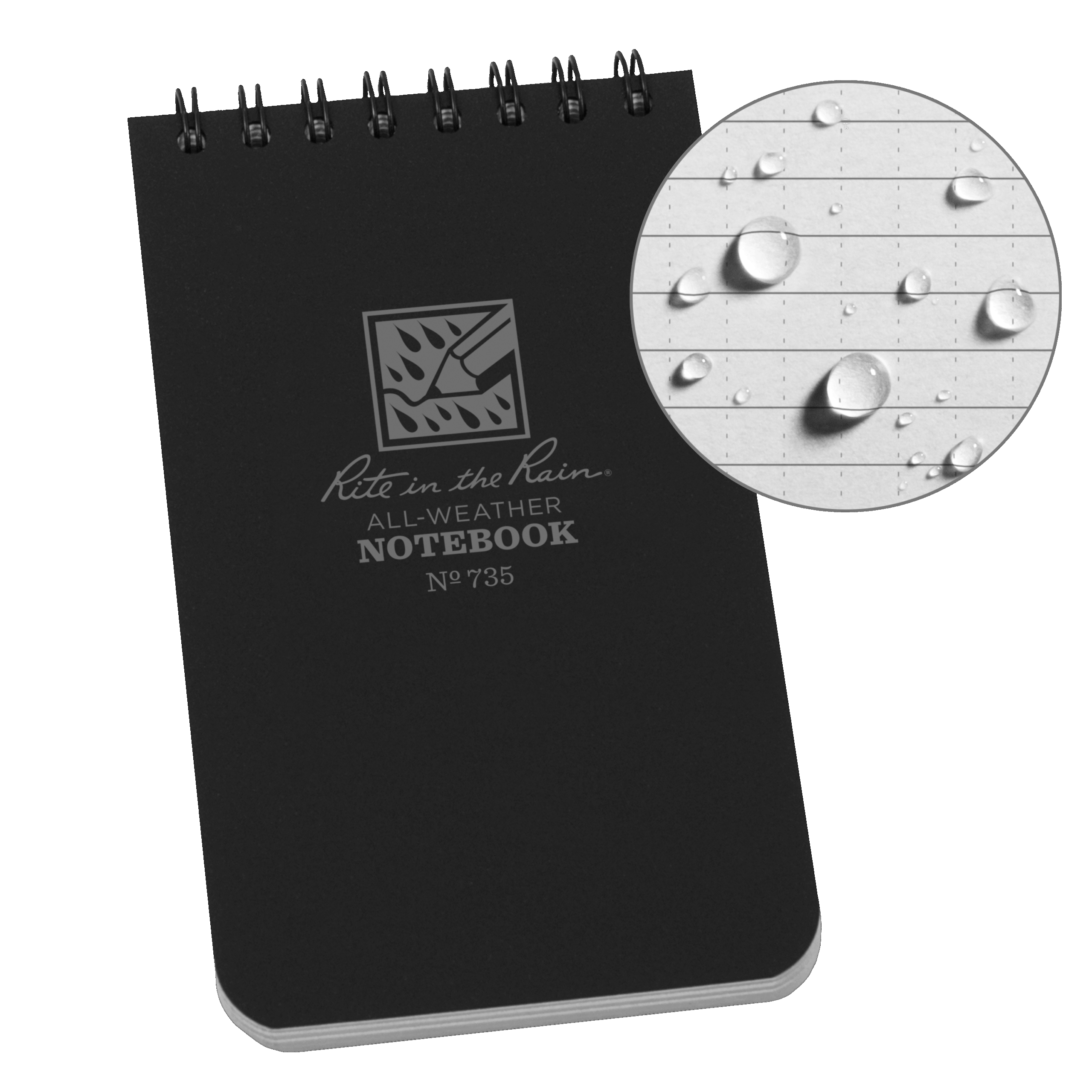 Rite in the Rain All-Weather Top-Spiral Notebook, 3′ x 5′, Black Cover, Universal Pattern (No. 735)