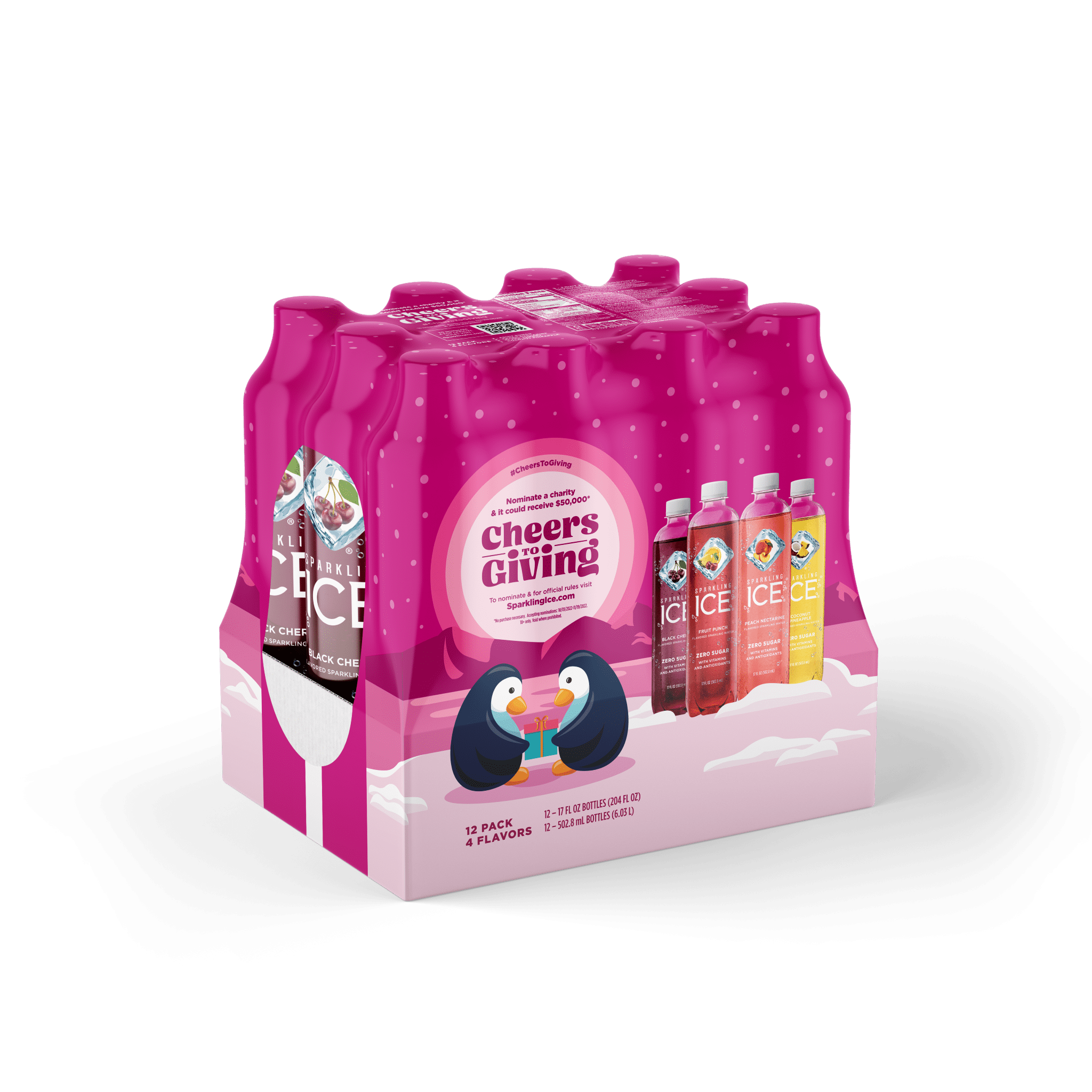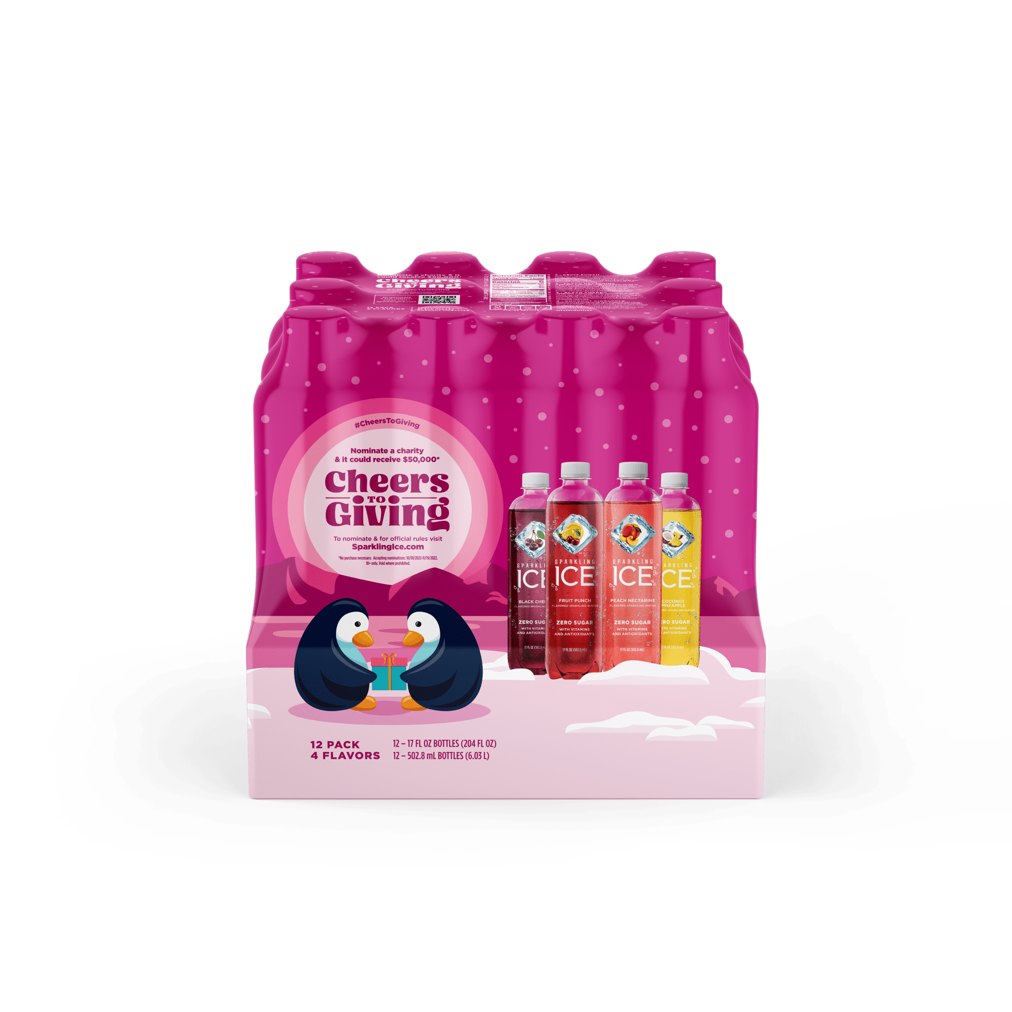 Bold, crisp and tropical, these four flavor favorites pack a real punch. The Sparkling Ice Pink Pack (Black Cherry, Peach Nectarine, Coconut Pineapple, Fruit Punch) includes four refreshing, zero-sugar flavors to keep you hydrated and happy.