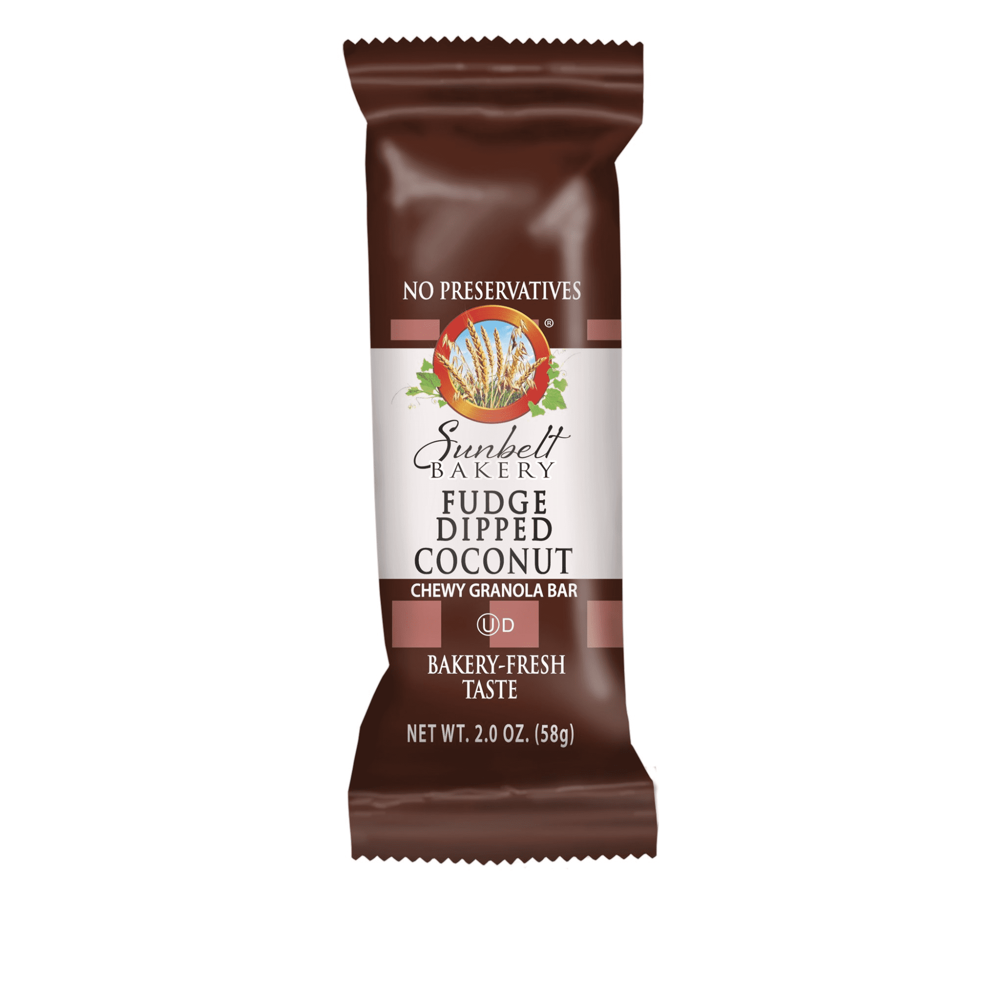 Coconut and chocolatey fudge create the ultimate flavor profile in Sunbelt Bakery Fudge Dipped Coconut Chewy Granola Bars. Delicious fudge covers whole grains and shredded coconut to create a tasty energy source good for any time of the day. Made with 4-grams of whole grain per serving and no preservatives, this energizing treat will help see you through your mid-day slump!