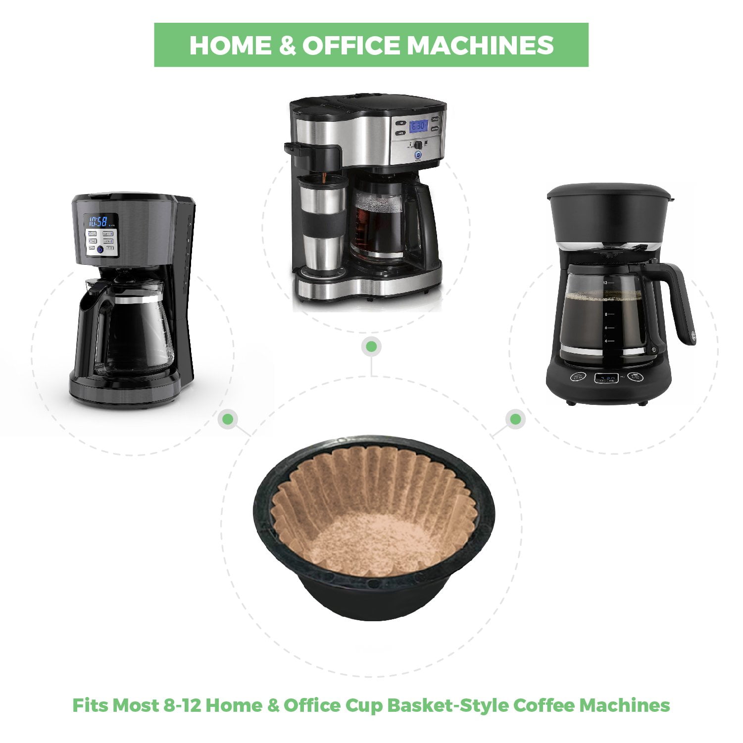 For use with 8-12-Cup Household Coffee Brewers – Compatible with Mr. Coffee, Melitta, Proctor Silex, Bunn, Hamilton Beach, Regal Ware, Sears, West Bend, Black & Decker Coffee Maker.