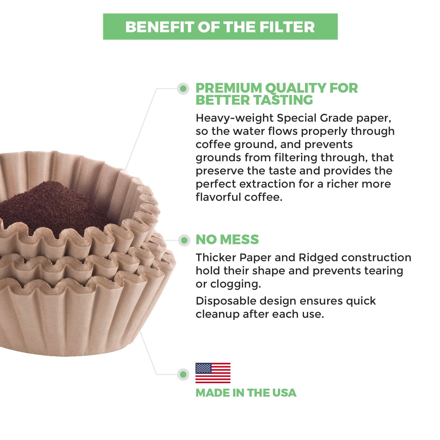 - PREMIUM QUALITY FOR BETTER TASTING – Made in the USA, Heavy-weight Special Grade Natural Brown Unbleached Paper, so the water flows properly through coffee ground, that provides the perfect extraction for a richer more flavorful coffee
