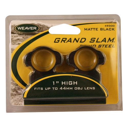 - Weaver 1" Steel Rings: Securely mounts your scope to your rifle, Quality, durable equipment. All Steel Construction. Torx screws holds securley. Torx wrench included. High mount fits up to 44mm objective.