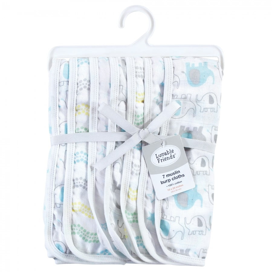 Luvable Friends Unisex Baby Muslin Burp Cloth 7pk, Basic Elephant, One Size