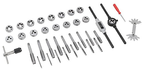 - Also includes Tap wrench, T-handle tap wrench, die stock, screwdriver and screw pitch gauge