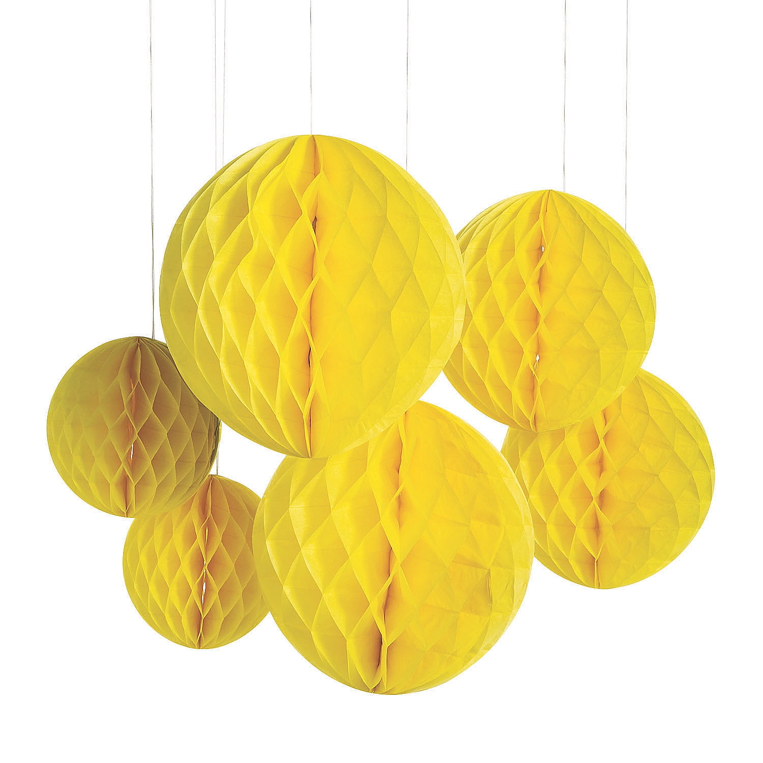 Tissue honeycomb balls are the perfect balance of texture and a splash of color for your next party. Decorations like these hanging honeycombs deliver huge impact on party décor at an affordable price. Combine these honeycombs with other shapes and colors from our wide selection of hanging décor to fill your party space beautifully. Perfect for birthday parties wedding receptions grad parties and more. Tissue paper. (6 pcs per unit) Includes three sizes: 6" 8" and 10" with 3 ft. of white string for each. Simple assembly required.YELLOW HONEYCOMB HANGING DECOR – Party Decor – 6 Pieces