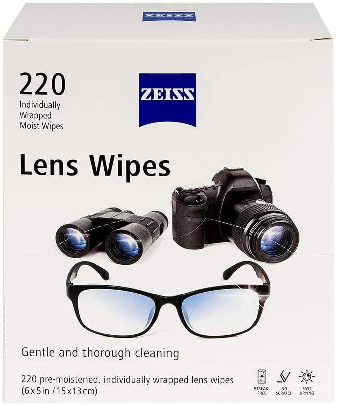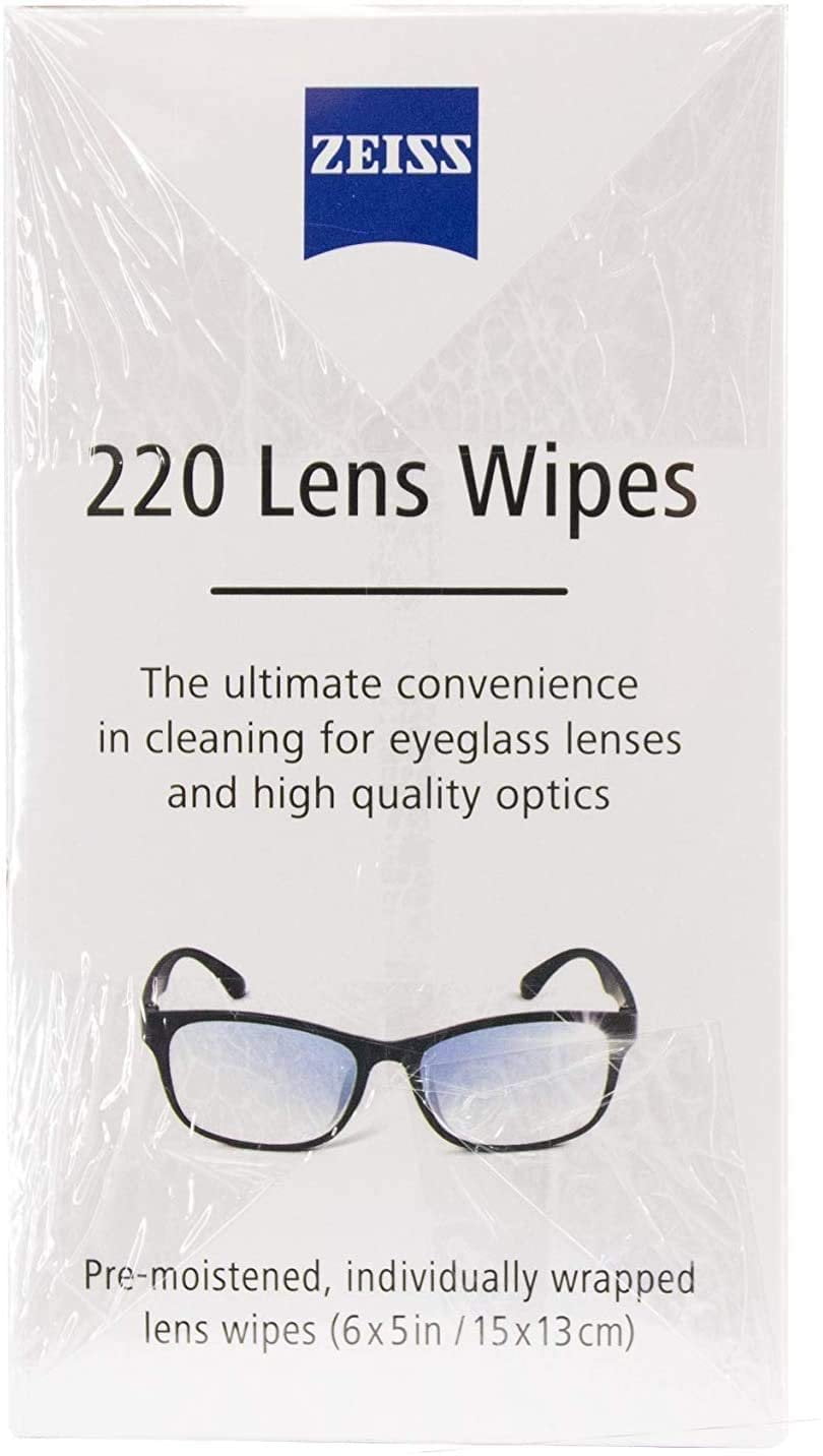 Zeiss Pre-Moistened Lens Cleaning , 220 Count. GENTLE: Pre-moistened lens gently clean glasses and lenses.. SAFE: Safe for cleaning lenses with anti-reflective or .. EFFECTIVE: -free clean without leaving streaks or residue.. SCRATCH FREE: Guaranteed not to scratch glasses or lenses..
