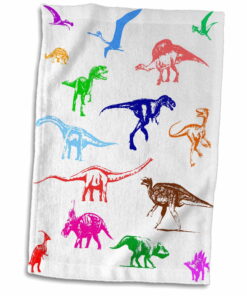 3dRose Colorful images of dinosaurs, herbivores and raptors on white – Towel, 15 by 22-inch