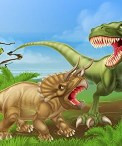 T Rex Triceratops Dinosaur Fight Scene Edible Cake Image Topper 8 Inch Round