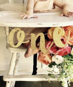 Glitter one Banner Girl Boy 1st Birthday High Chair Baby Shower Party Decor