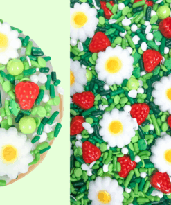 Sprinkle Deco Small White Daisies and Strawberries Desert Cupcake Ice cream Cake Decoration Confetti Quin Pearly Sprinkles Toppers 6oz